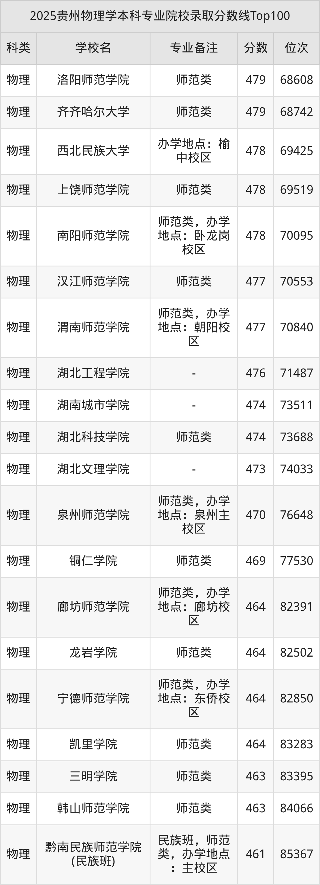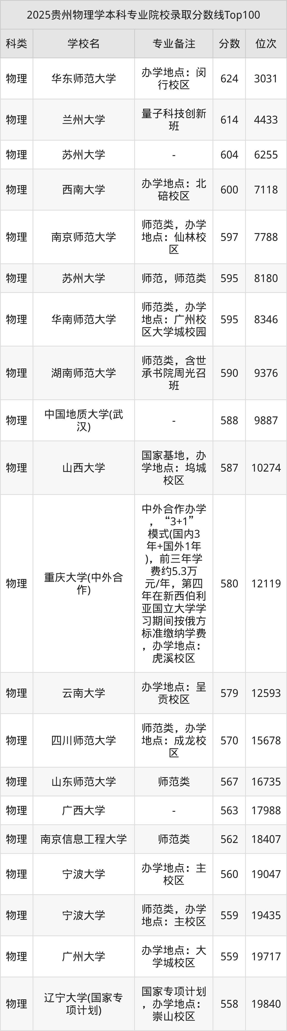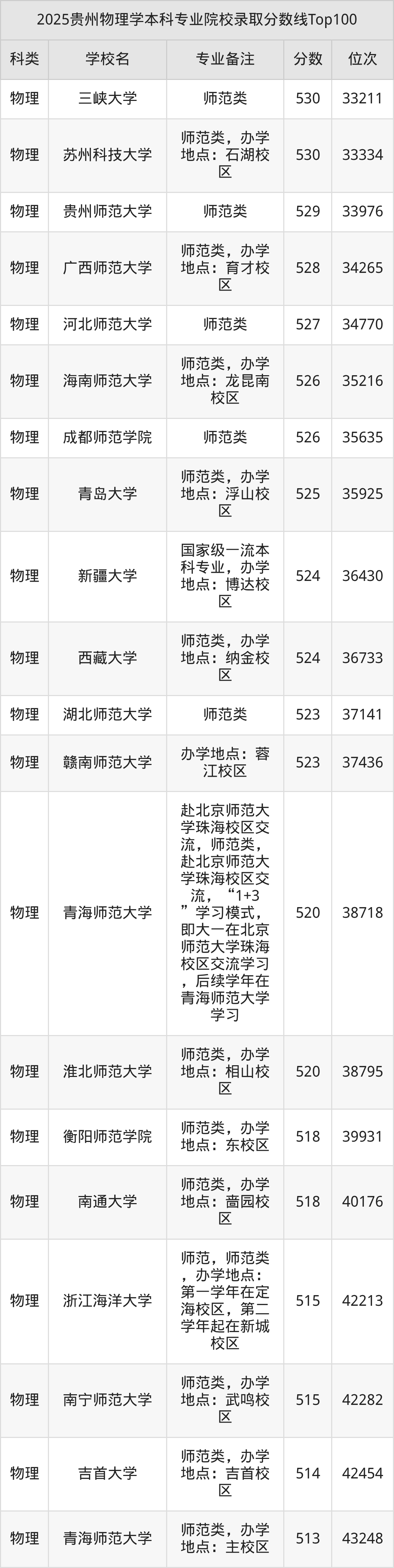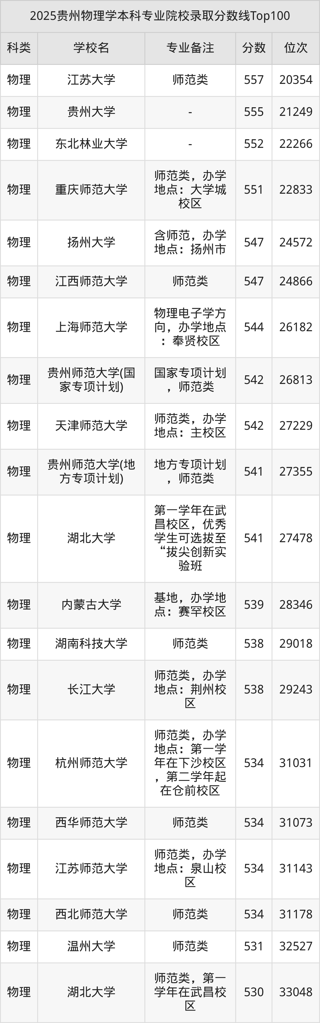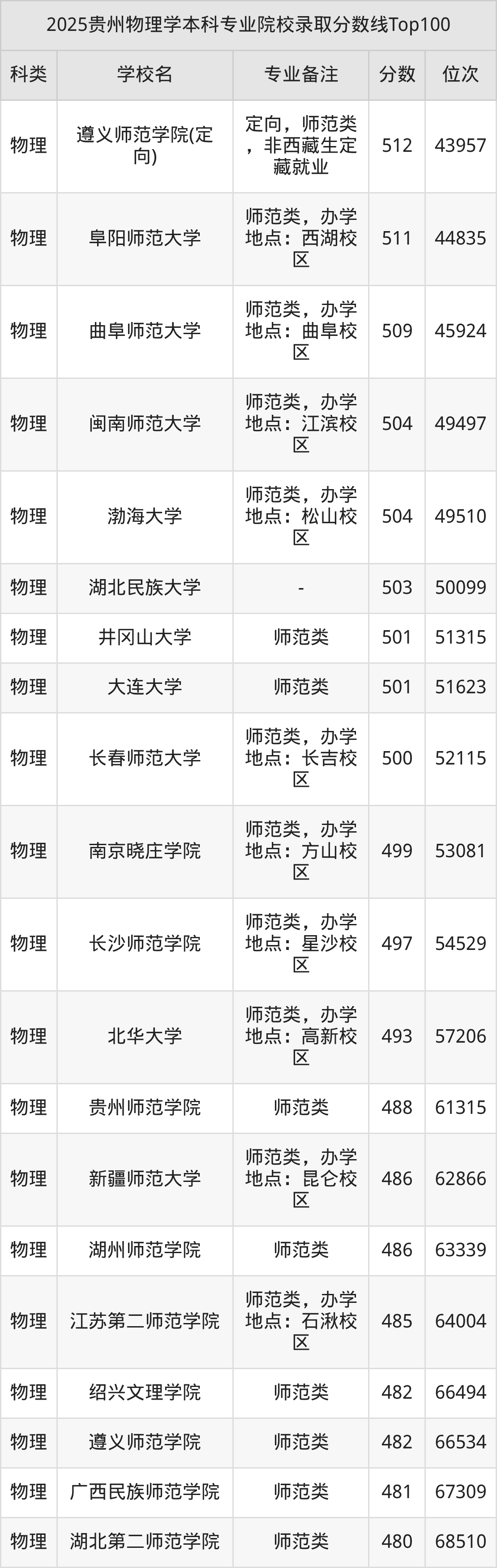 2025年贵州物理学分数线排名前5的大学名单(本科最难报考):