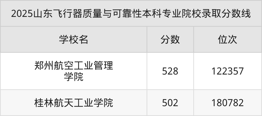 2025年山东飞行器质量与可靠性分数线排名前2的大学名单(本科最难报考):