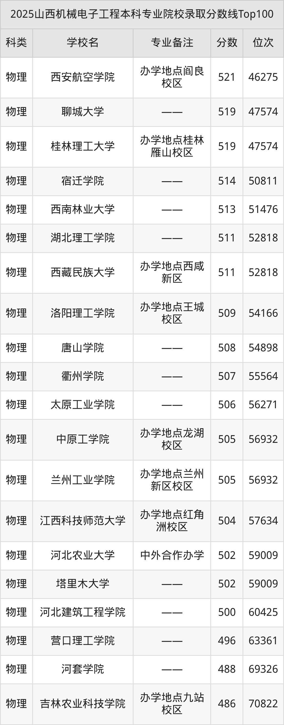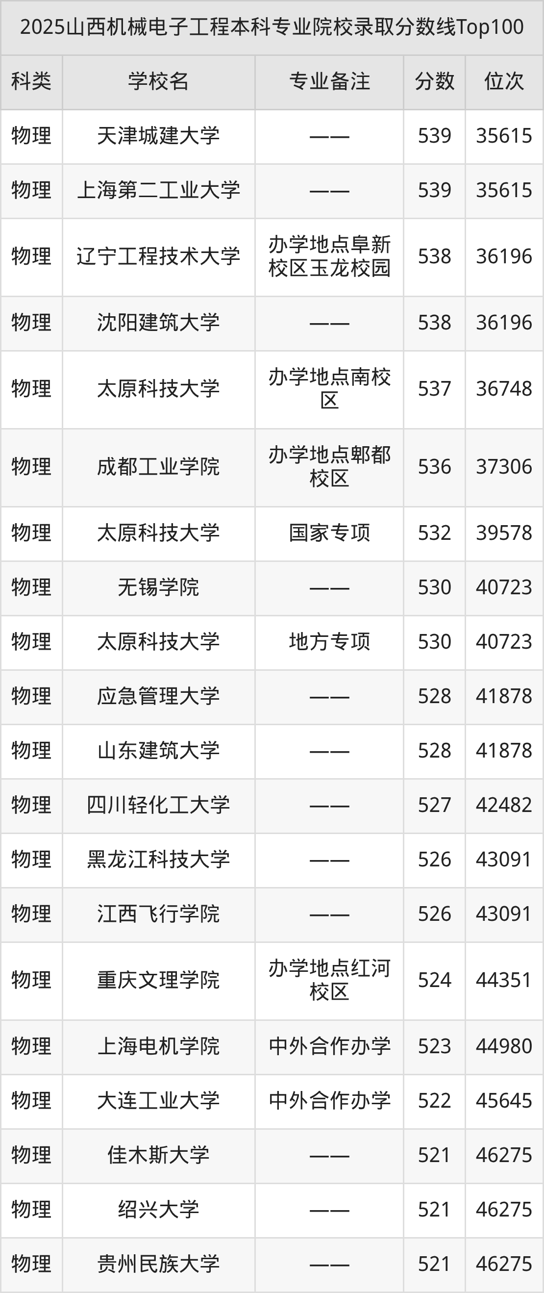 2025年山西机械电子工程分数线排名前5的大学名单(本科最难报考):