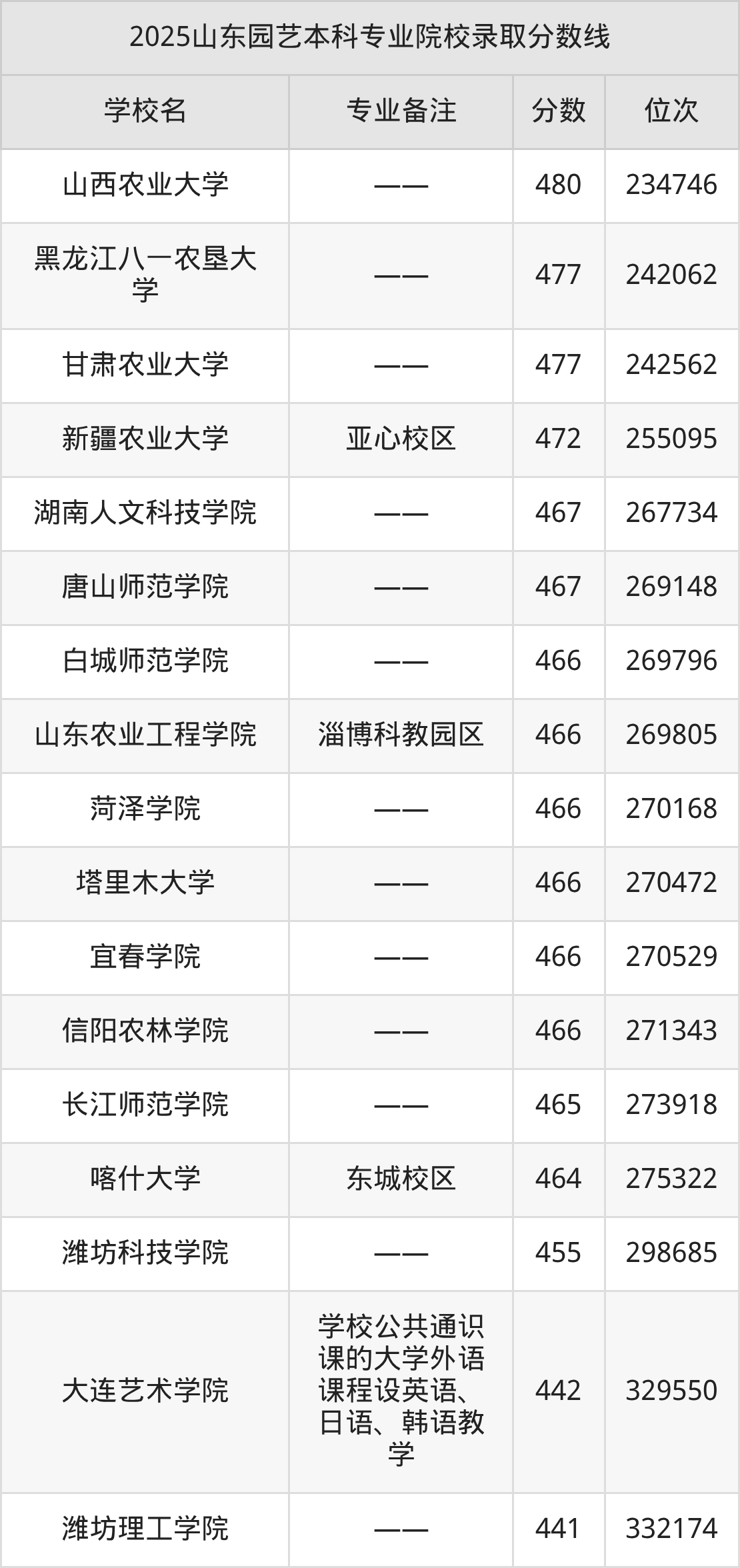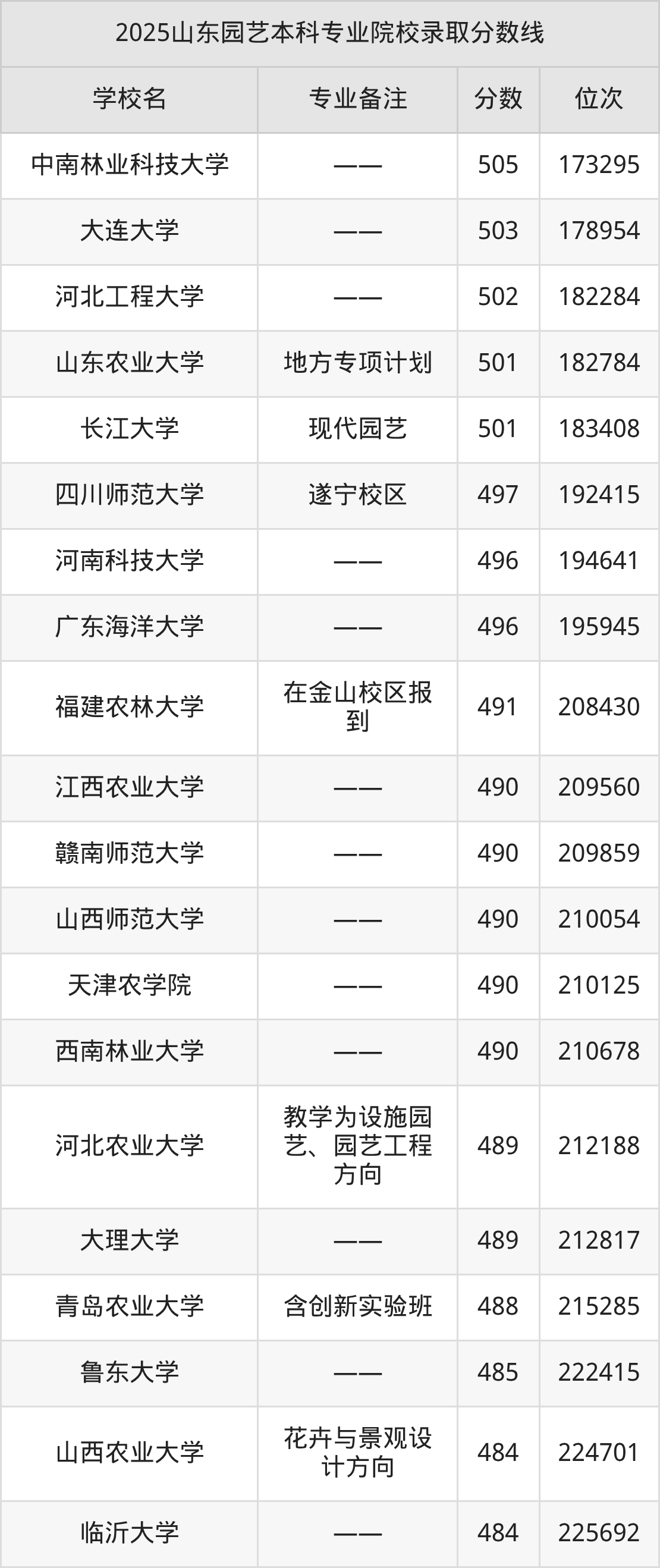 2025年山东园艺分数线排名前5的大学名单(本科最难报考):