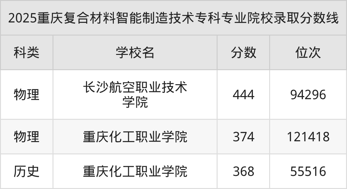 2025年重庆复合材料智能制造技术分数线排名前3的大学名单(专科最难报考):