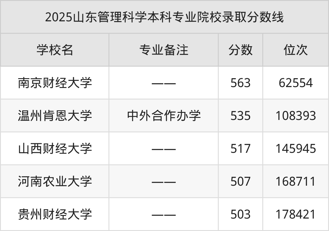 2025年山东管理科学分数线排名前5的大学名单(本科最难报考):