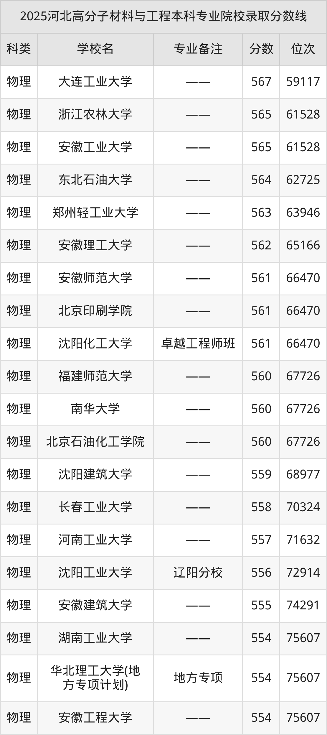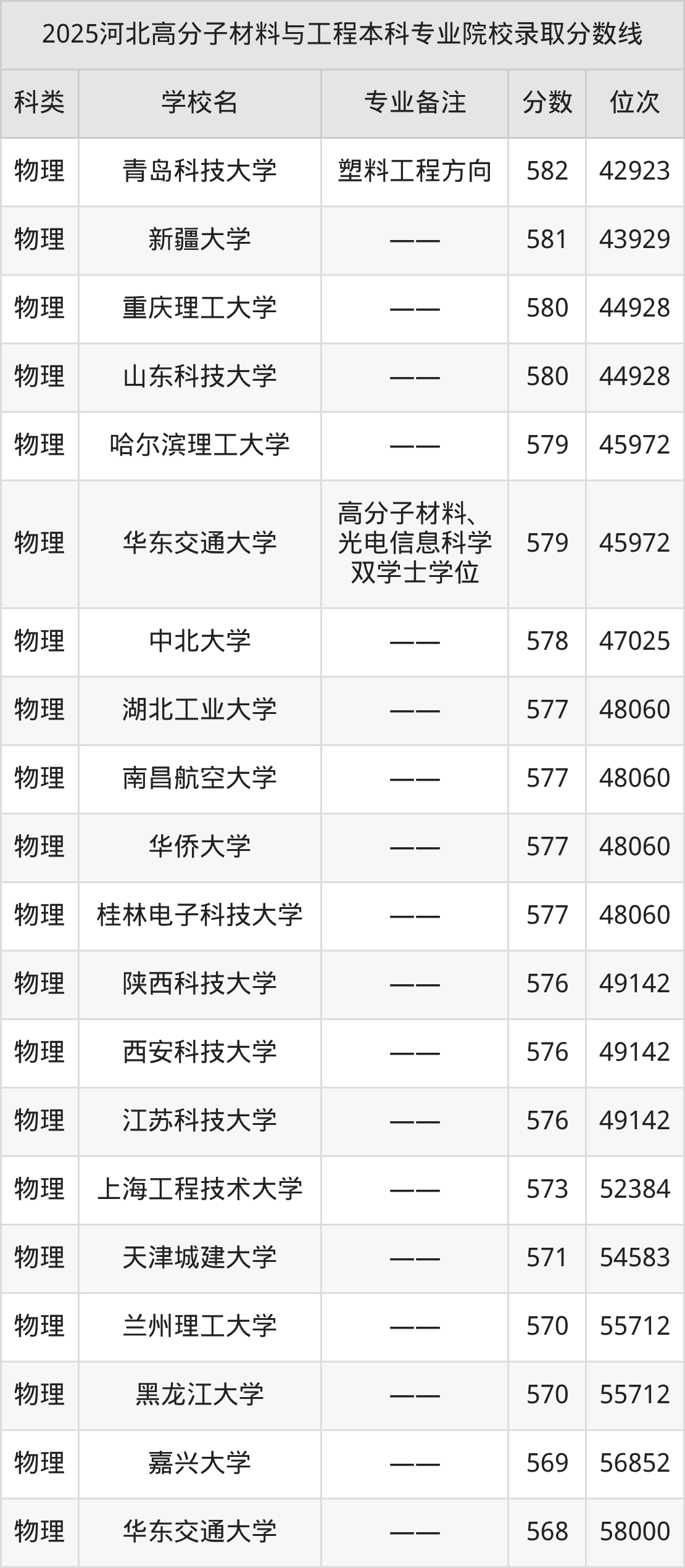 2025年河北高分子材料与工程分数线排名前5的大学名单(本科最难报考):