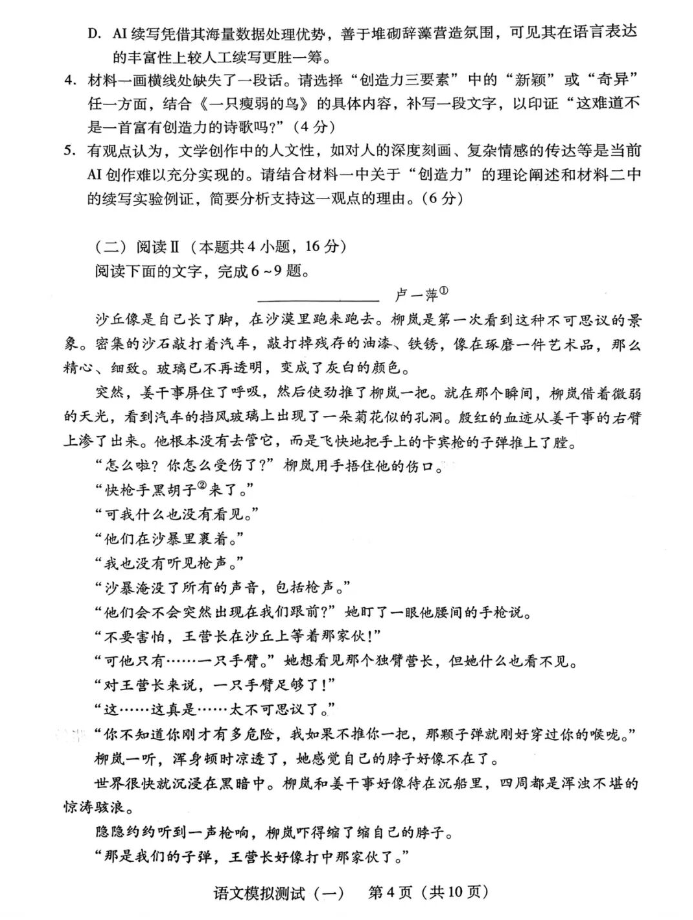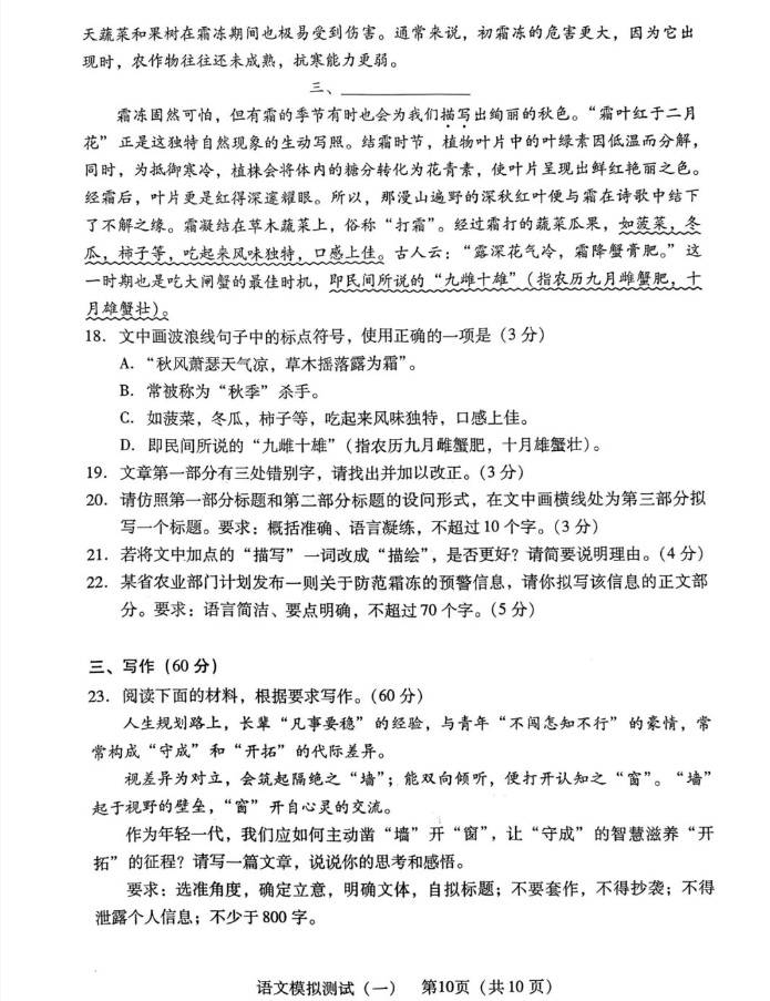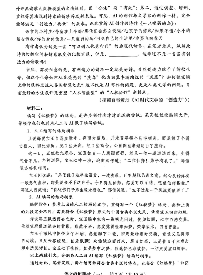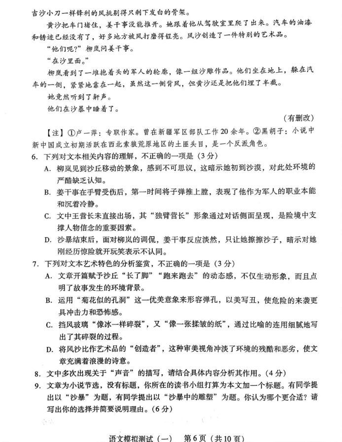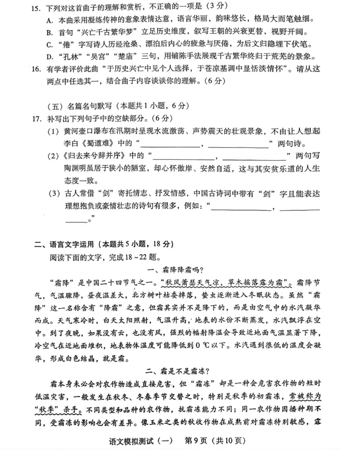 语文试卷及答案更新如下: