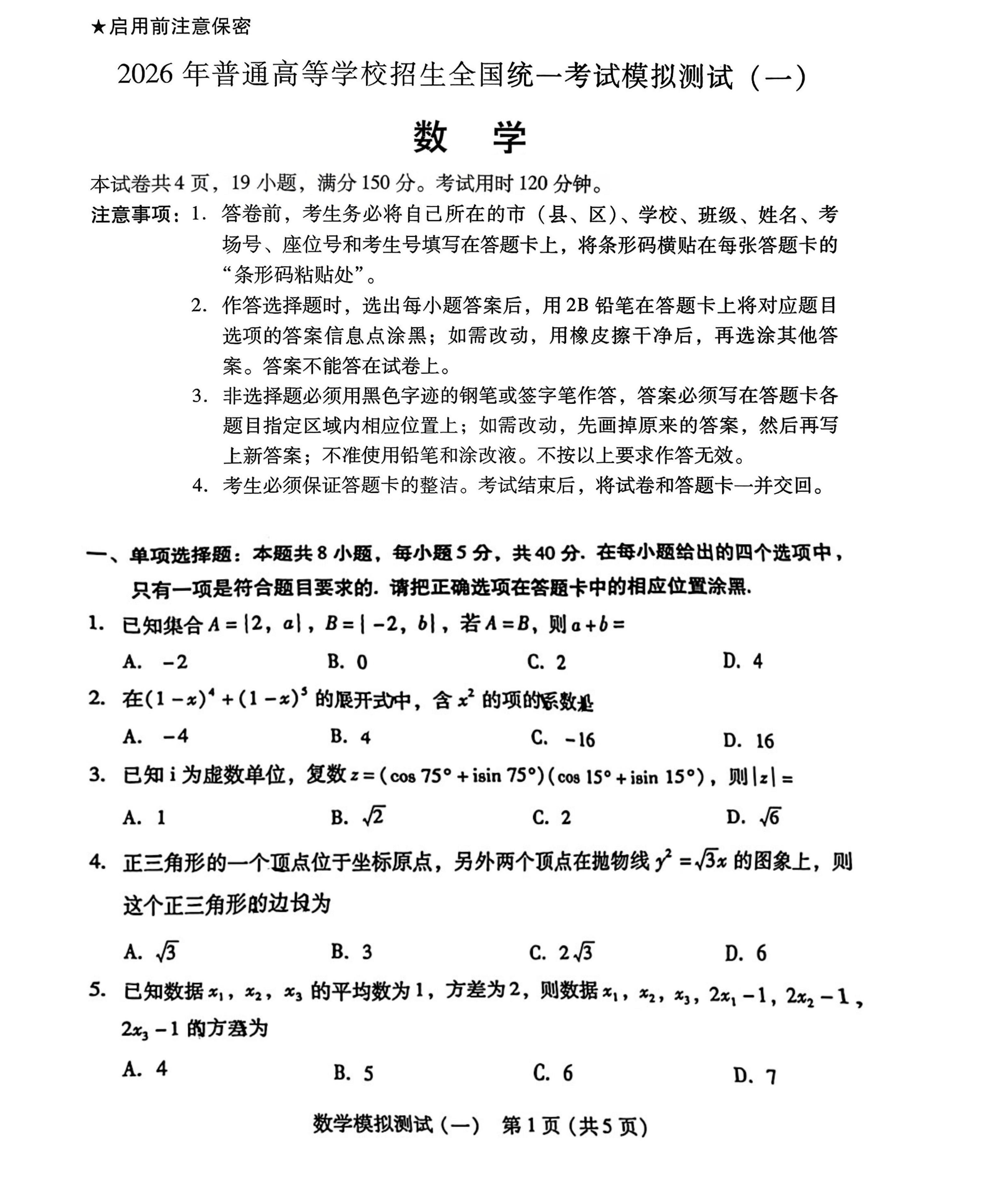 数学试卷及答案已经更新:
