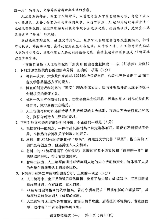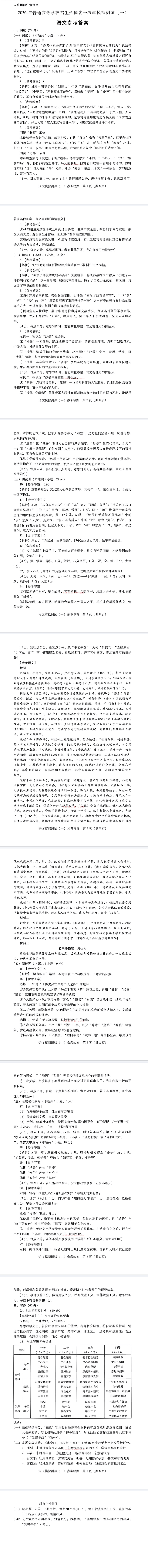 1、2026广东一模语文试题及参考答案