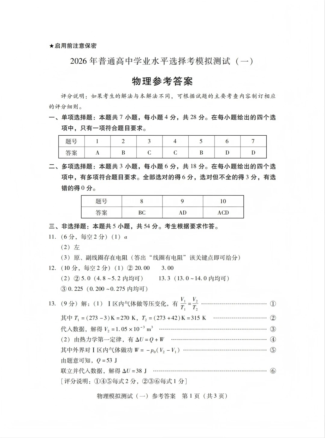 4、2026广东一模物理试题及参考答案