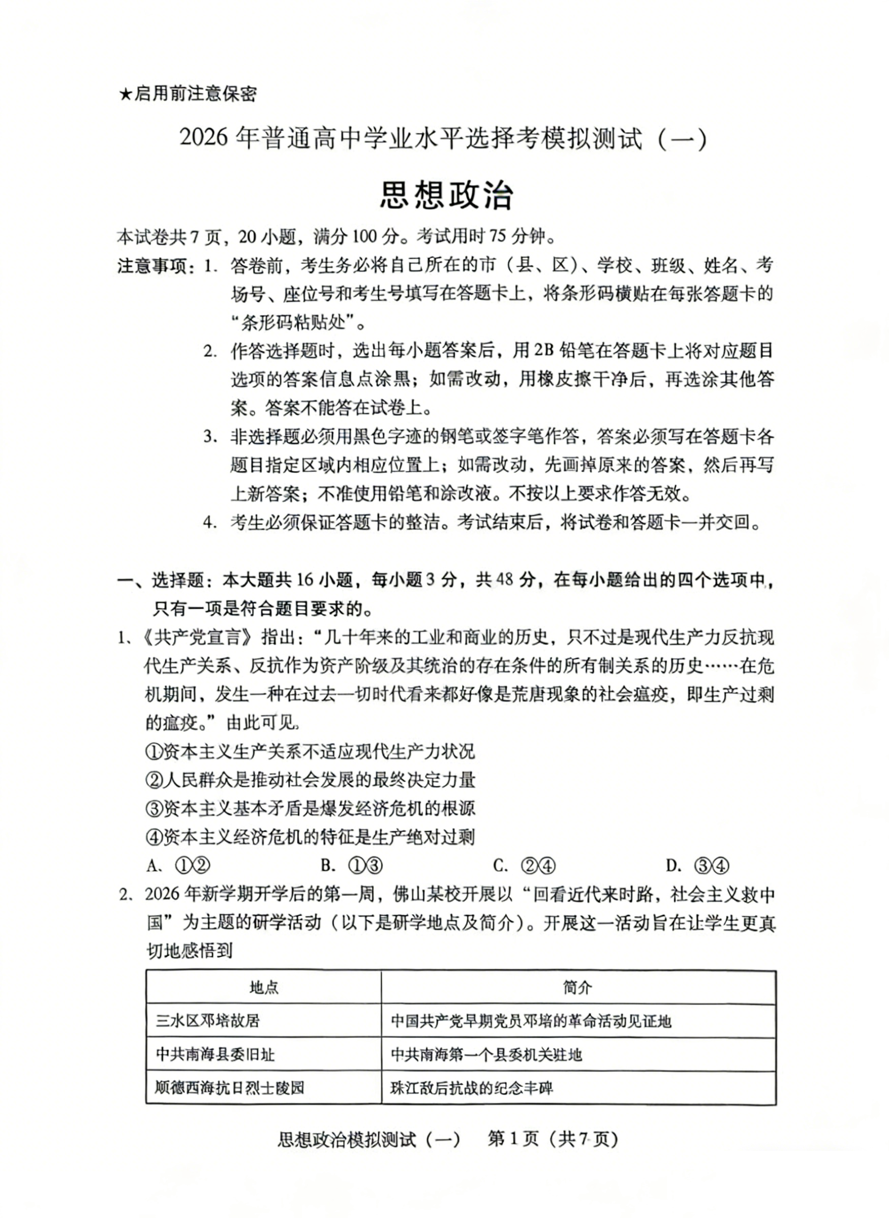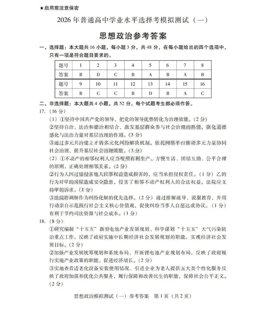 8、2026广东一模政治试题及参考答案