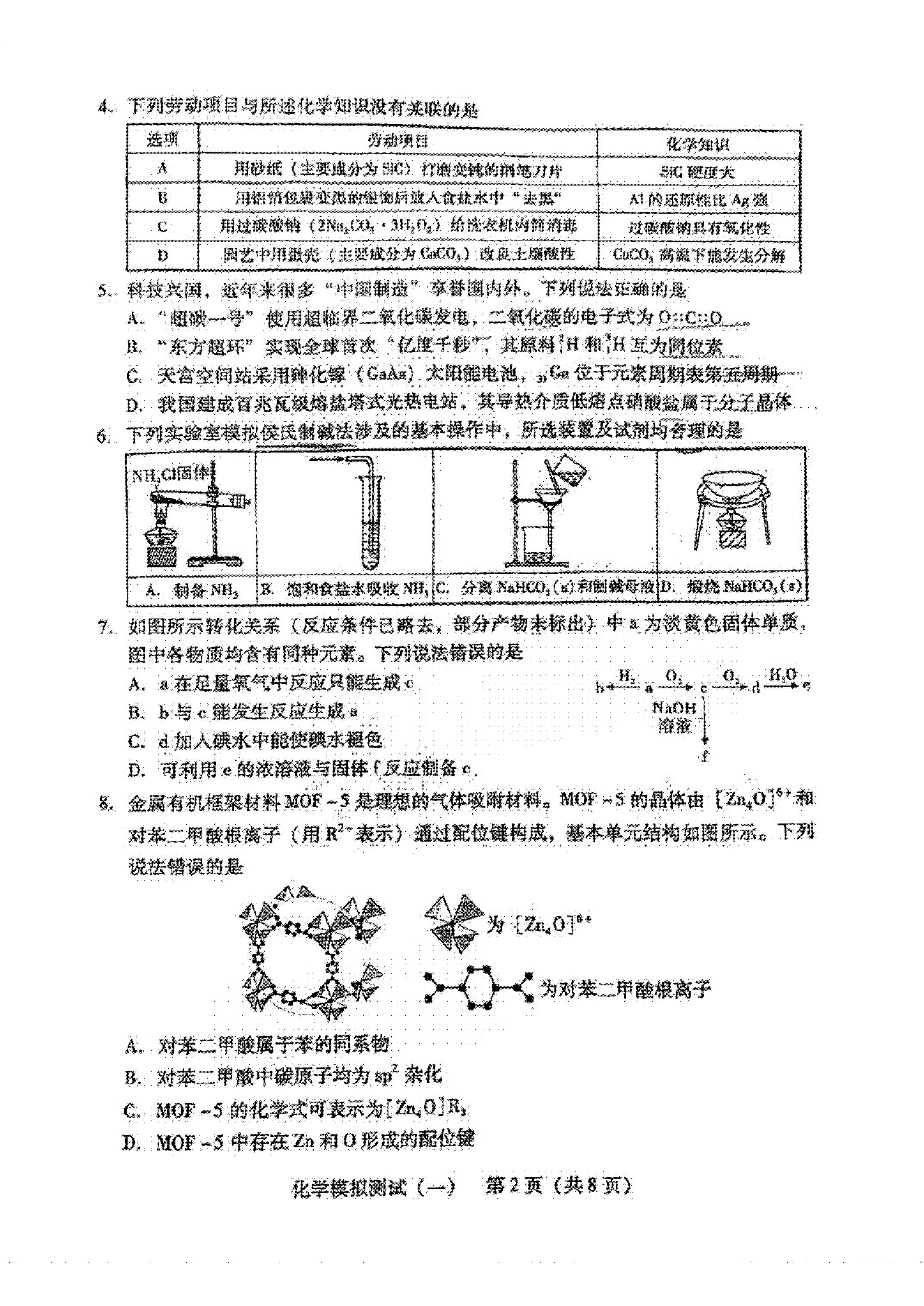 6、2026广东一模化学试题及参考答案