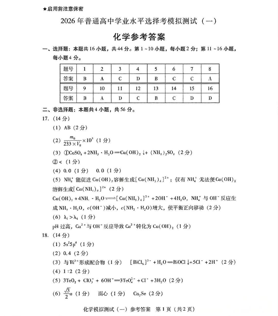 化学试卷及答案已经更新: