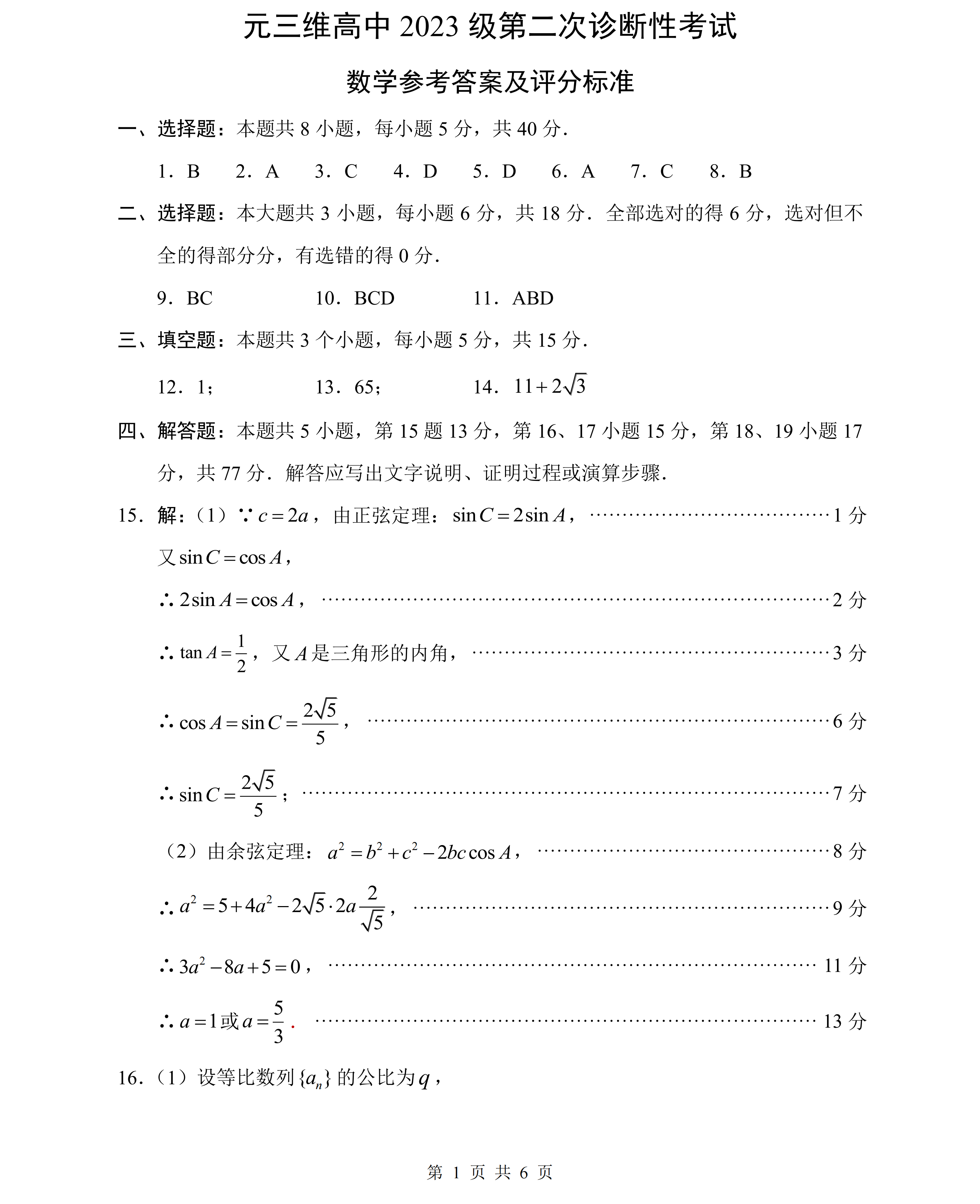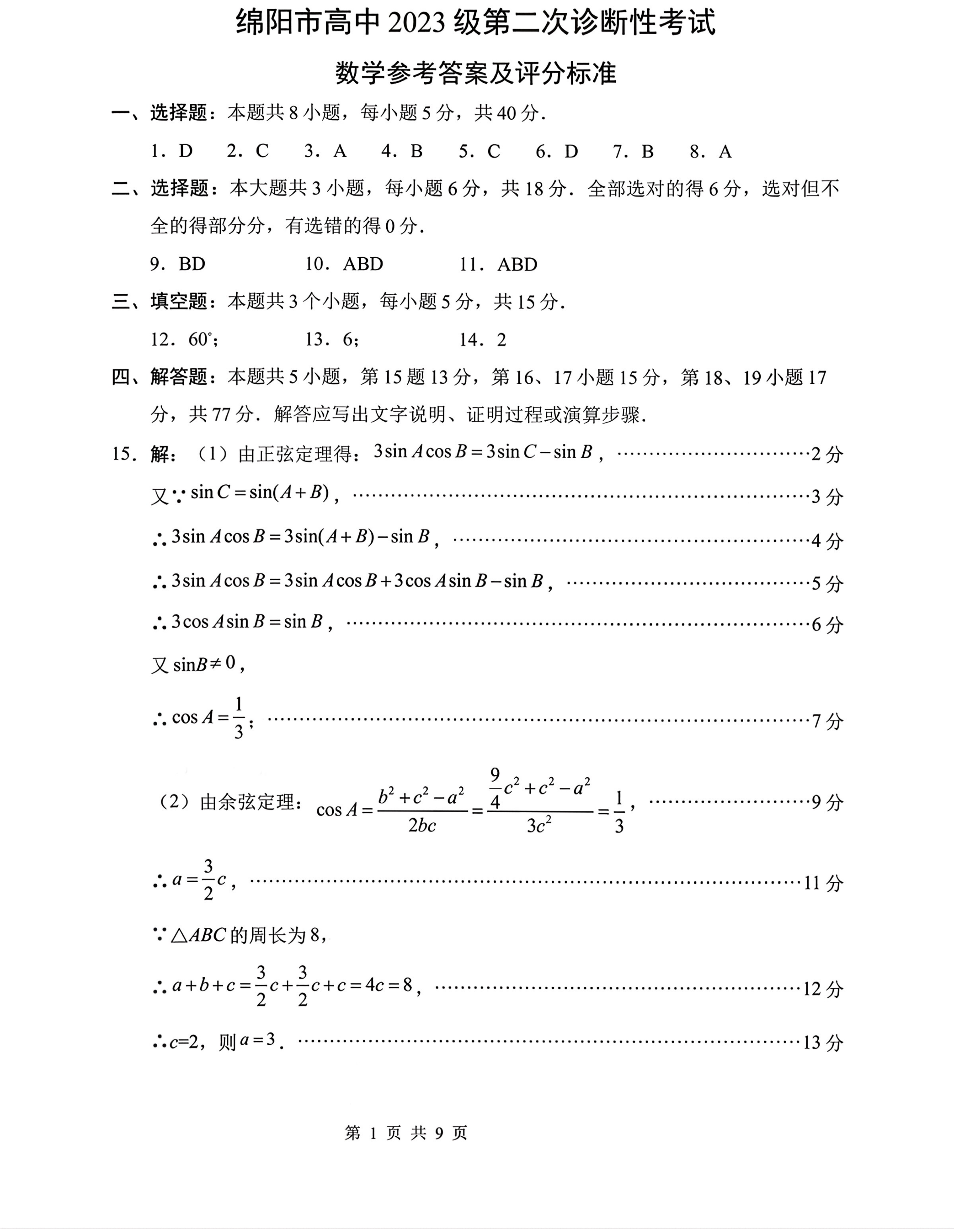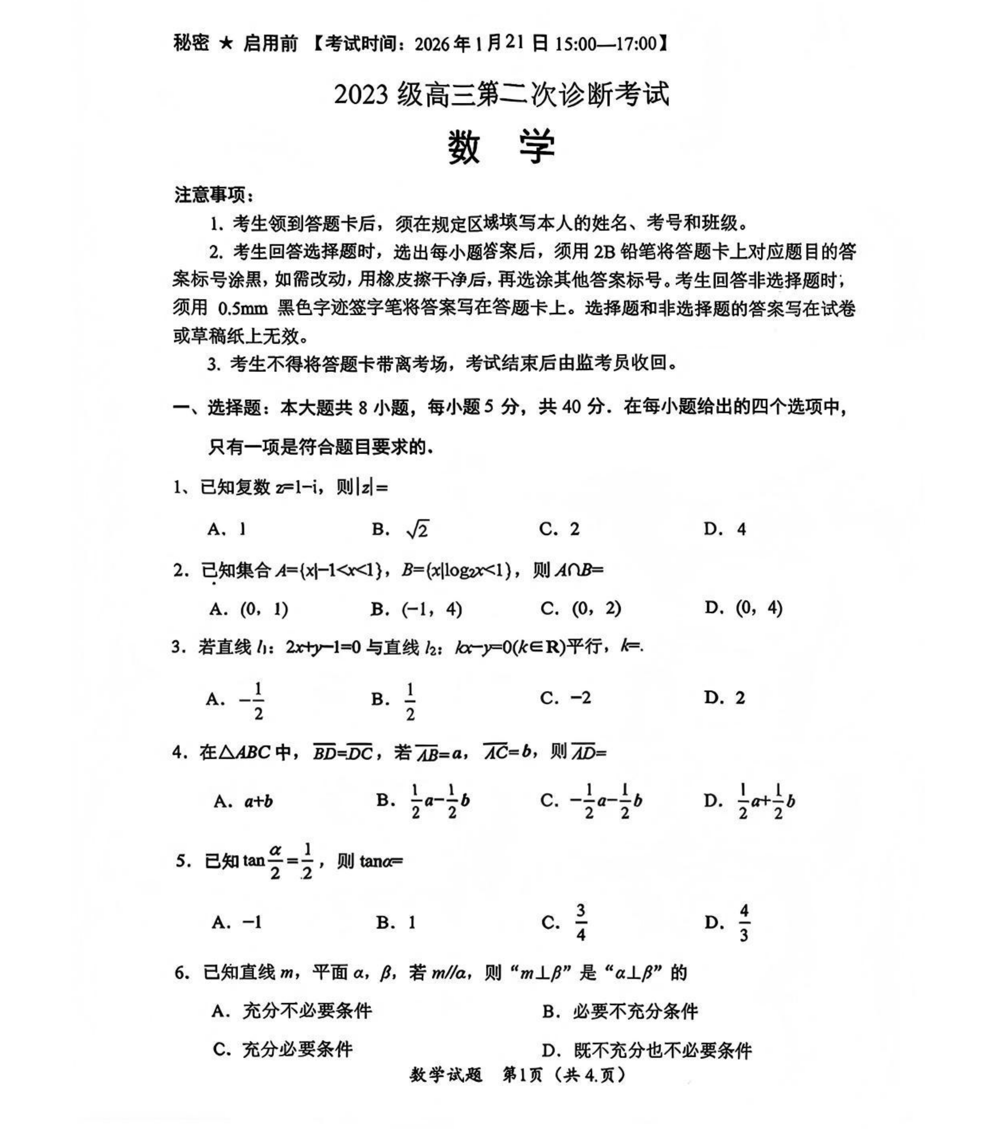 2026届绵阳高三第二次诊断性考试数学科目1月21日17:00考试结束,为帮助各位同学估分,本文汇总了绵阳二诊数学试卷和答案,包括2026绵阳二诊数学试题、2026绵阳二诊数学答案解析,想对答案的同学一起来看看吧。