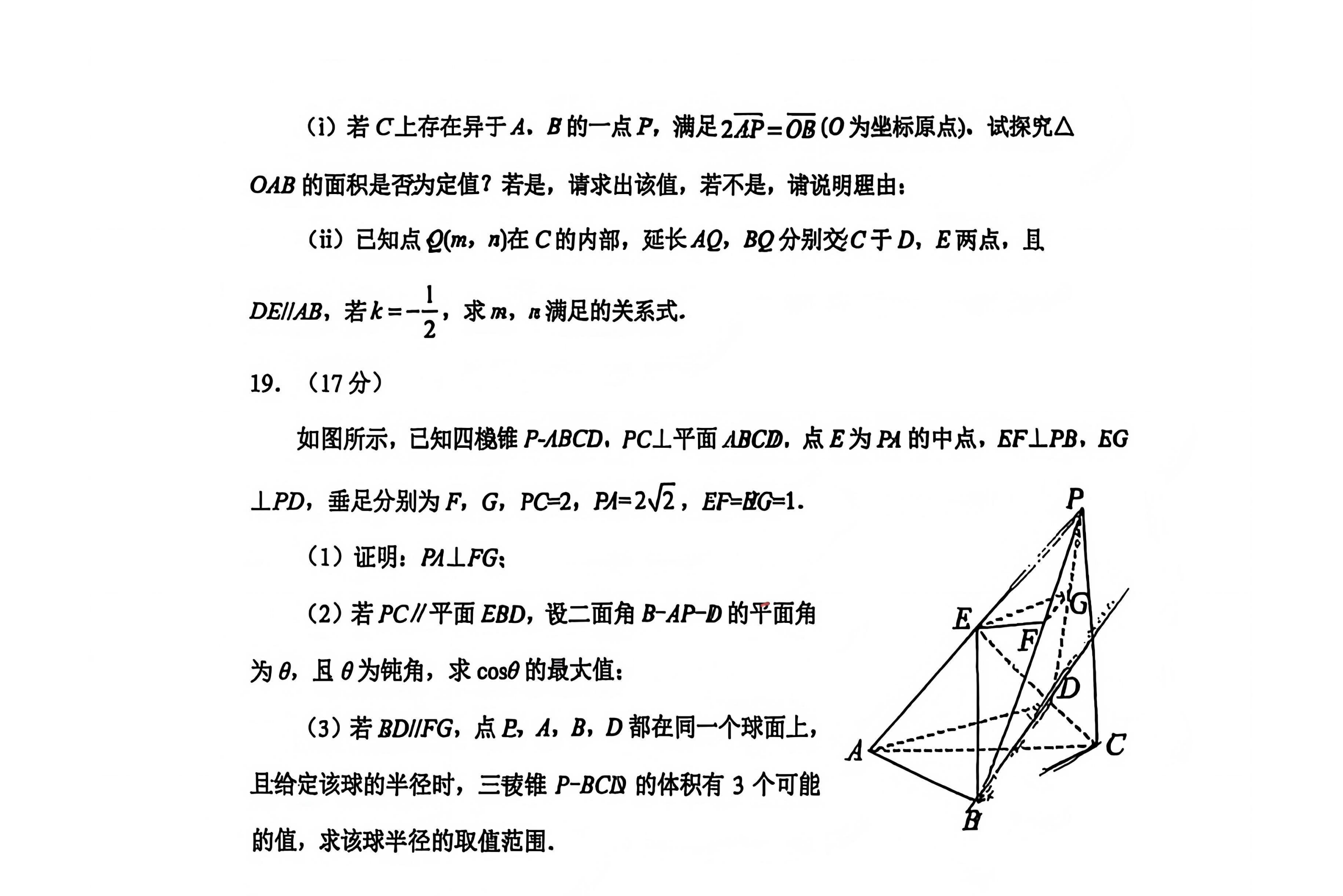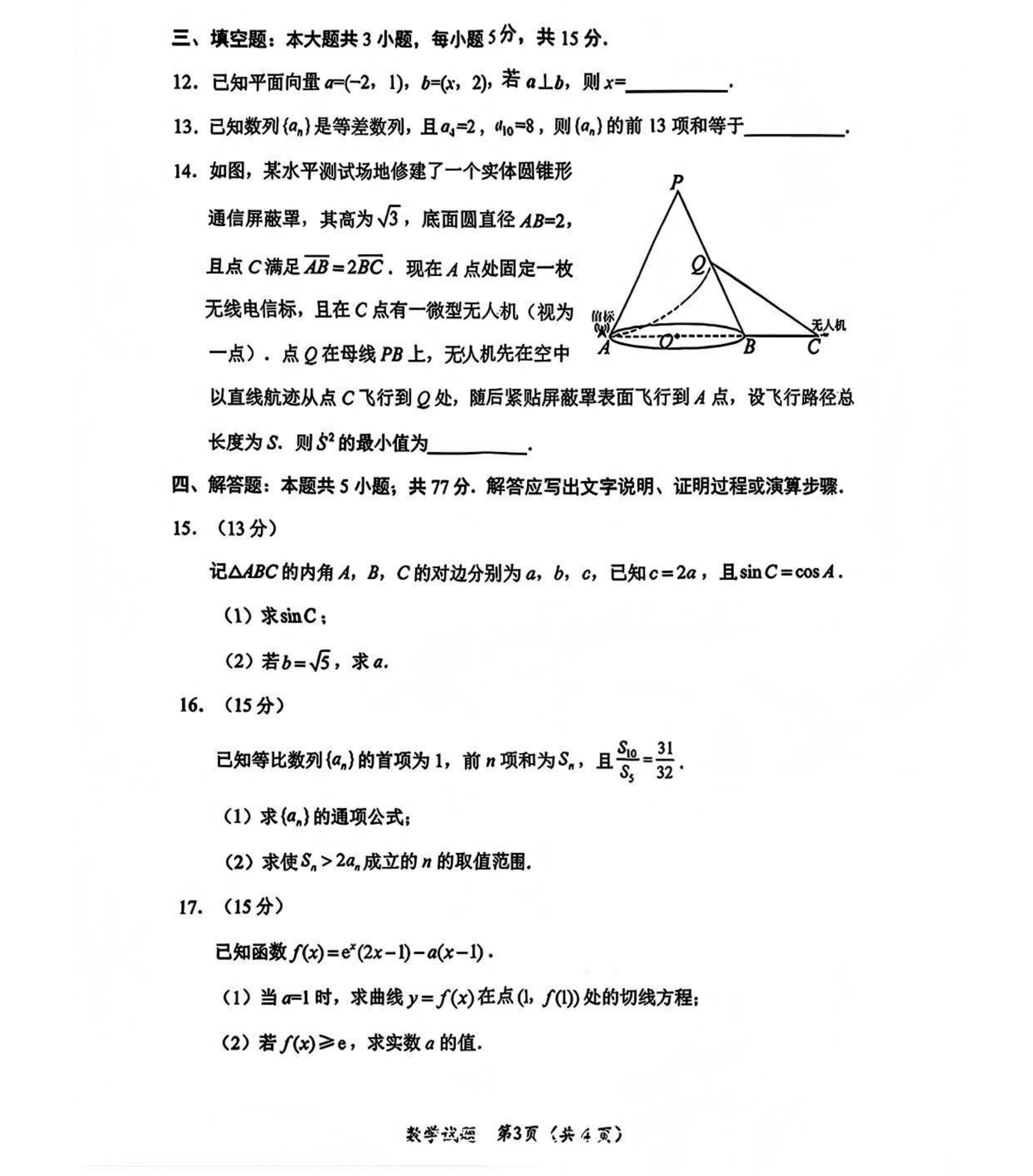 数学科目考试范围:一诊内容占比40%;必修第二册第六章、第七章、第八章、选择性必修第一册。