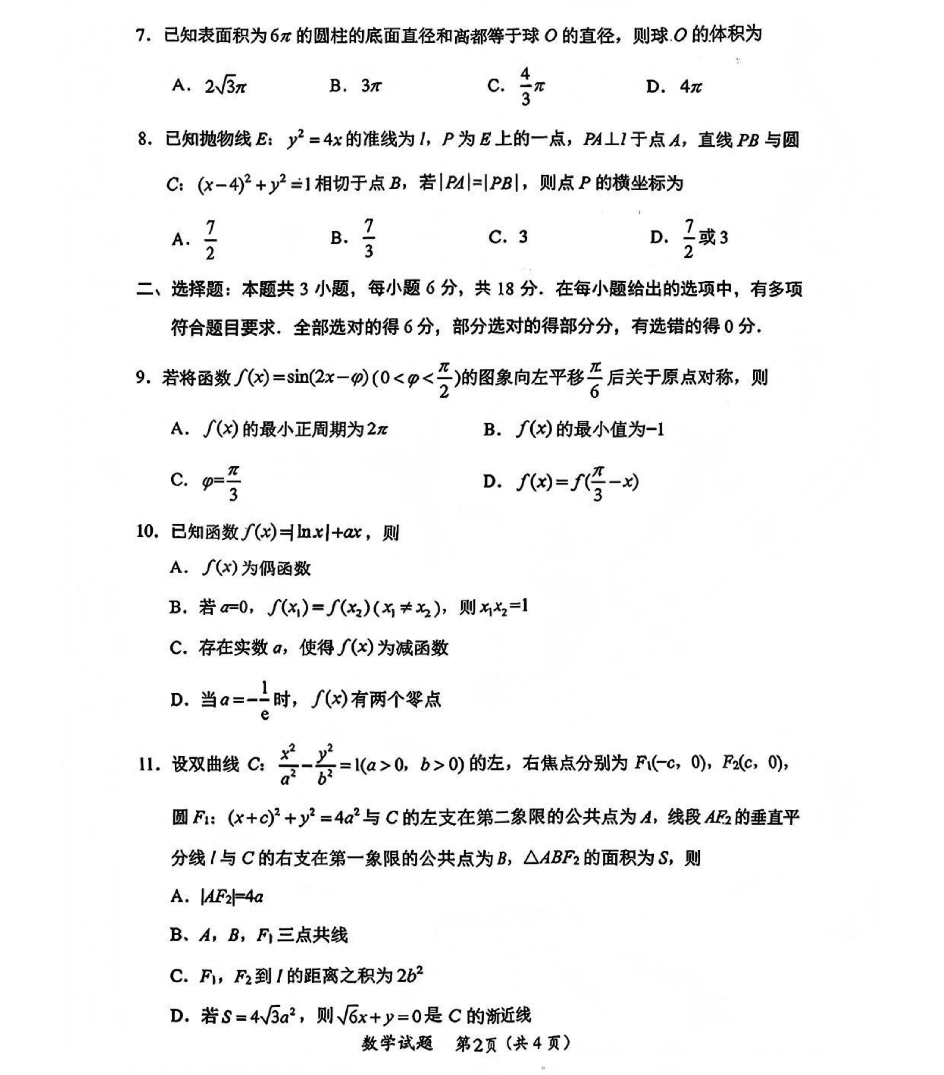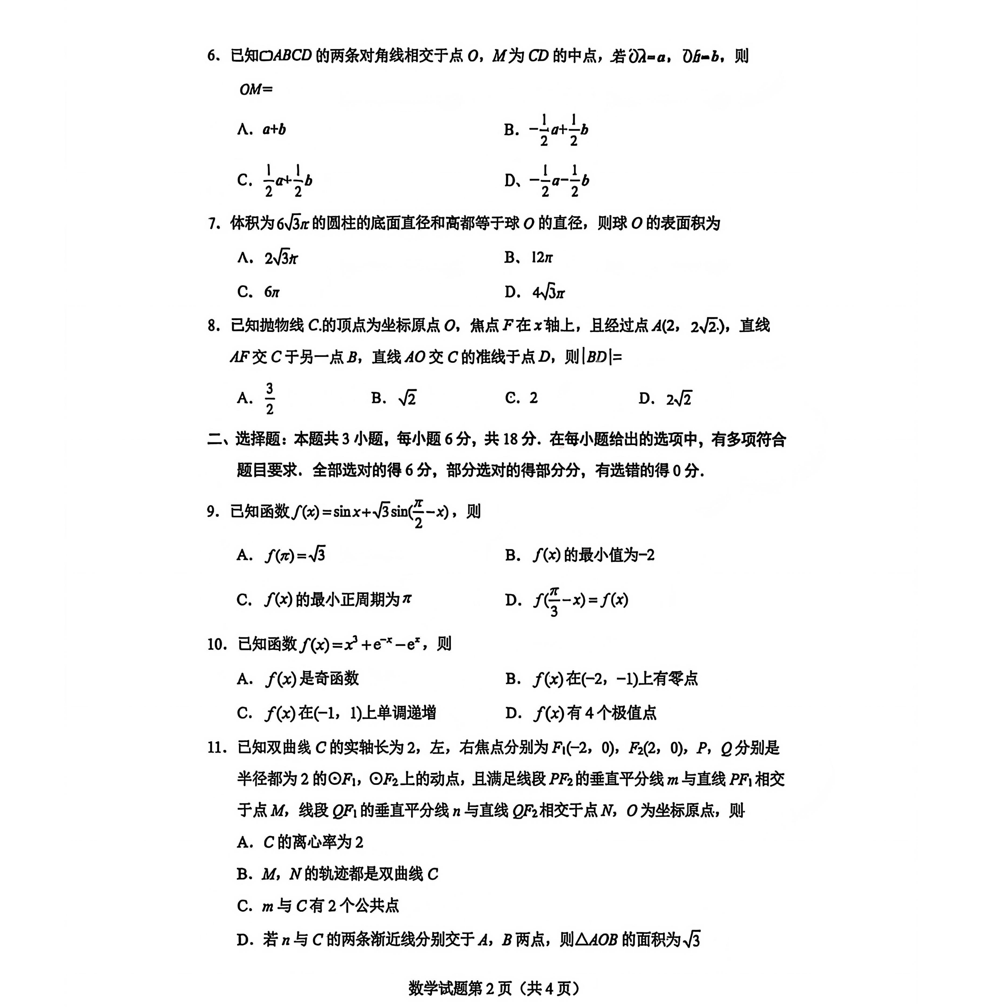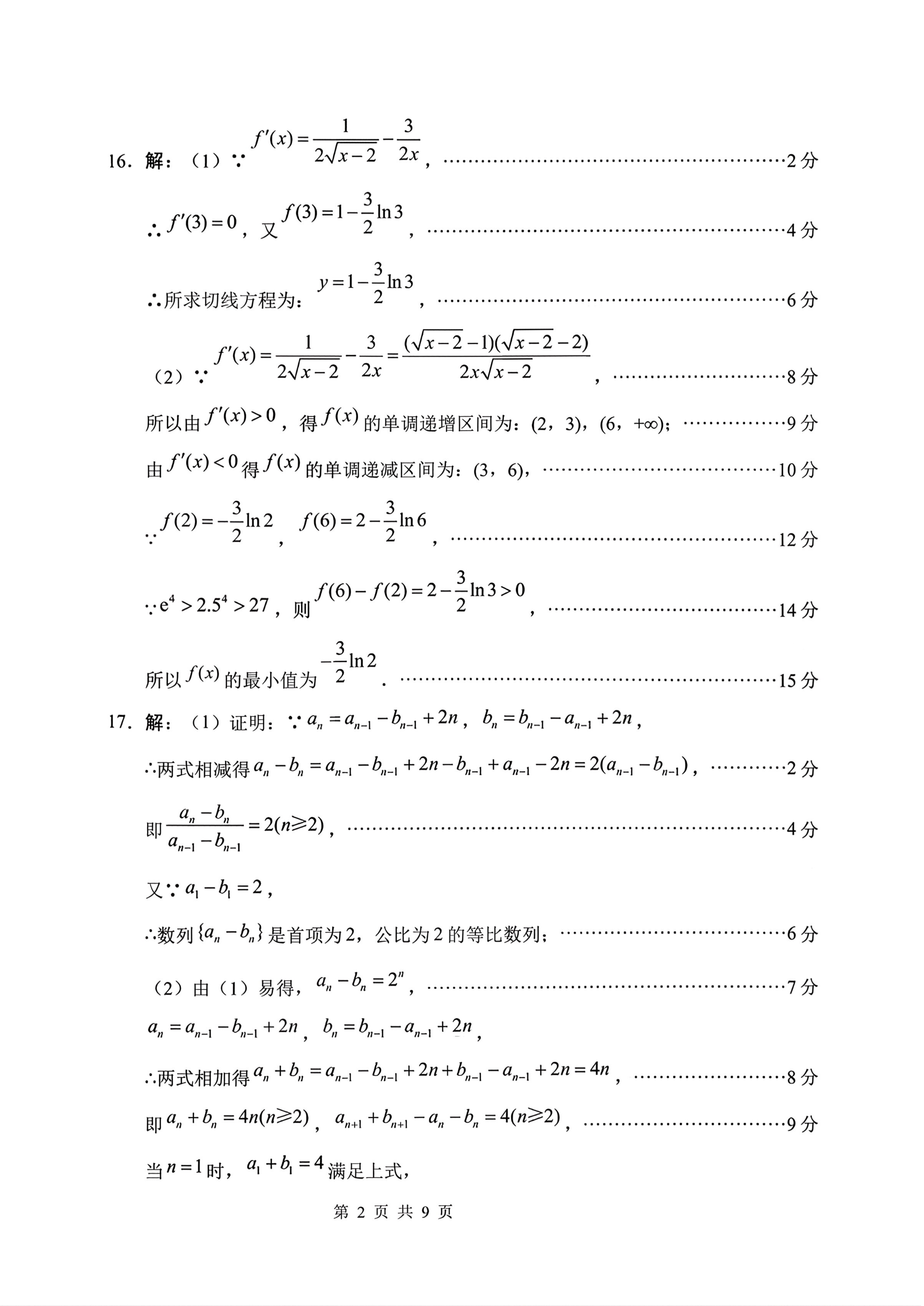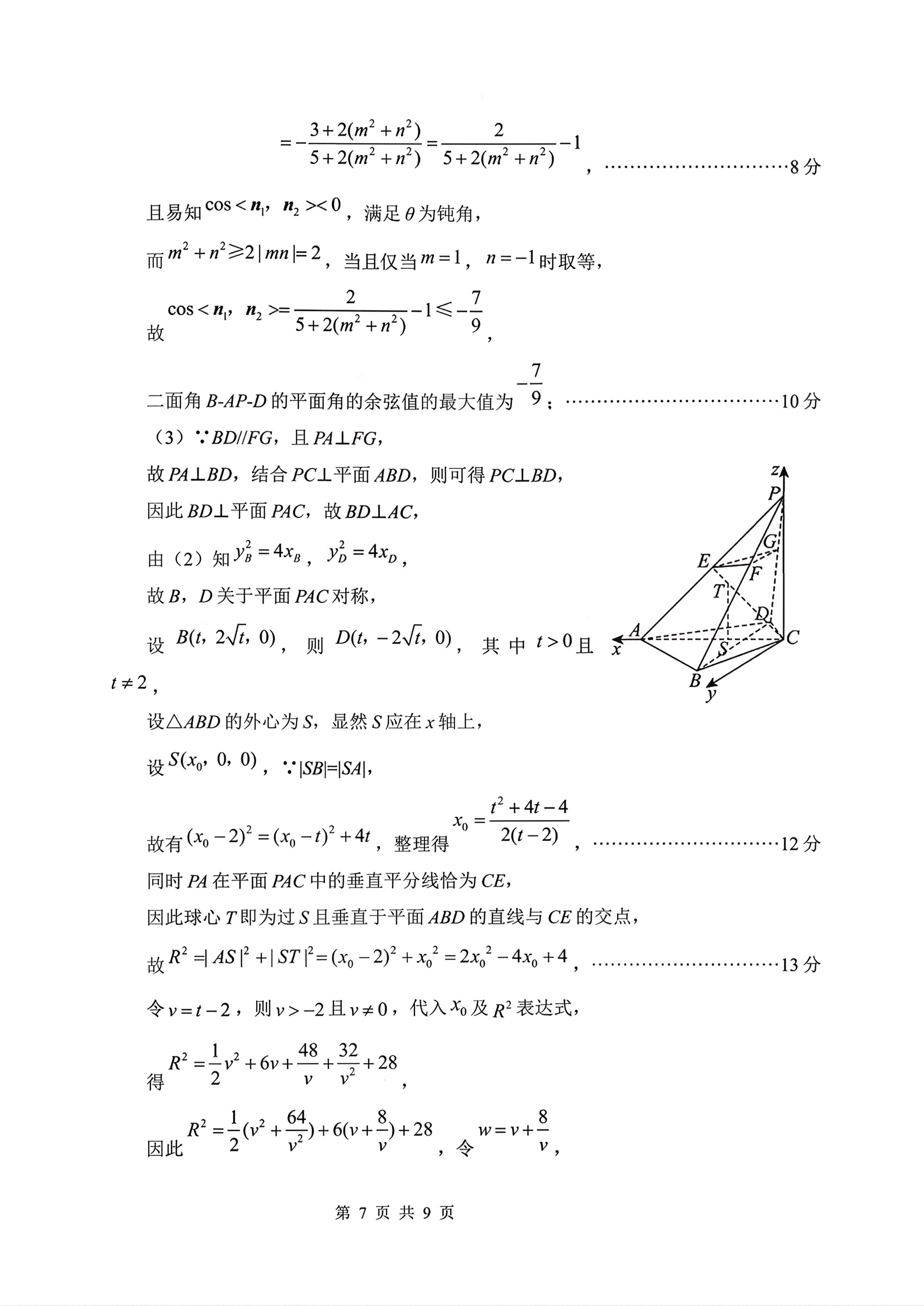 二、2026绵阳二诊数学试卷及答案(B卷)