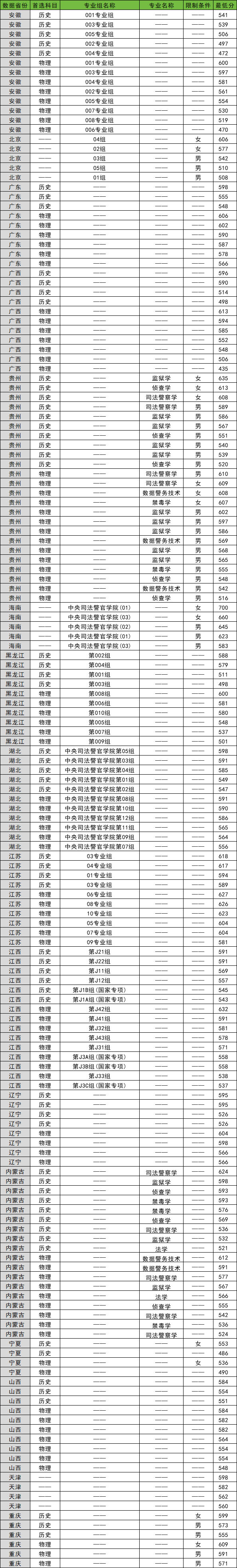 中央司法警官学院03专业组(不限),2024年投档最低分549分;