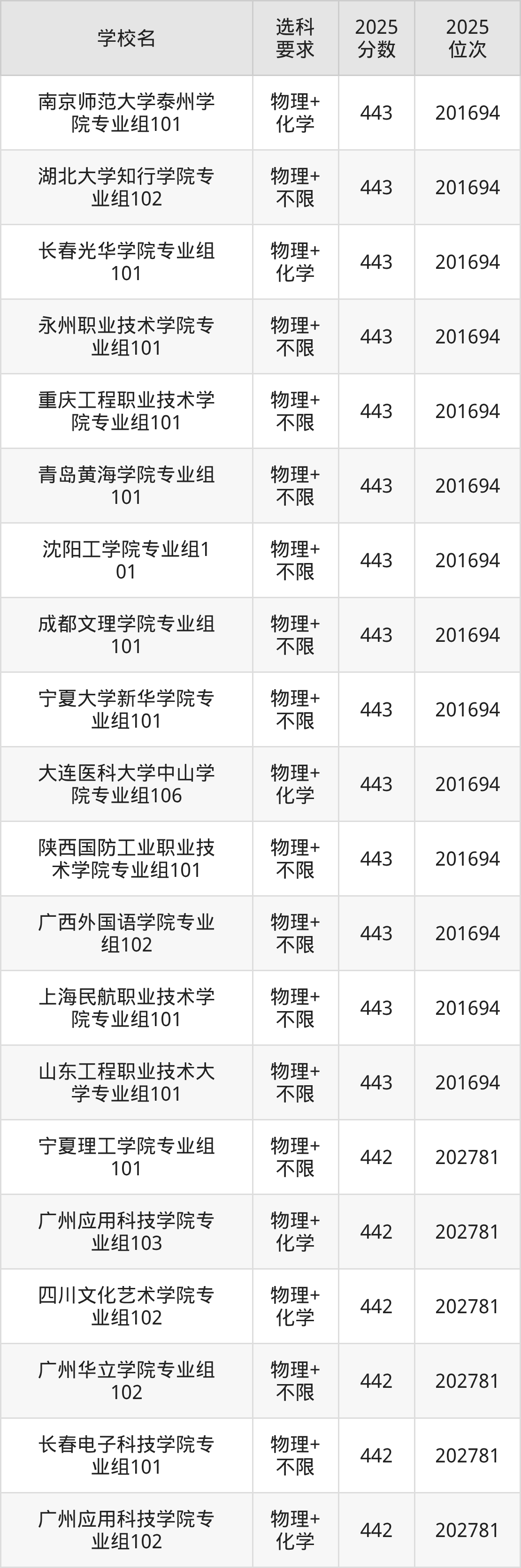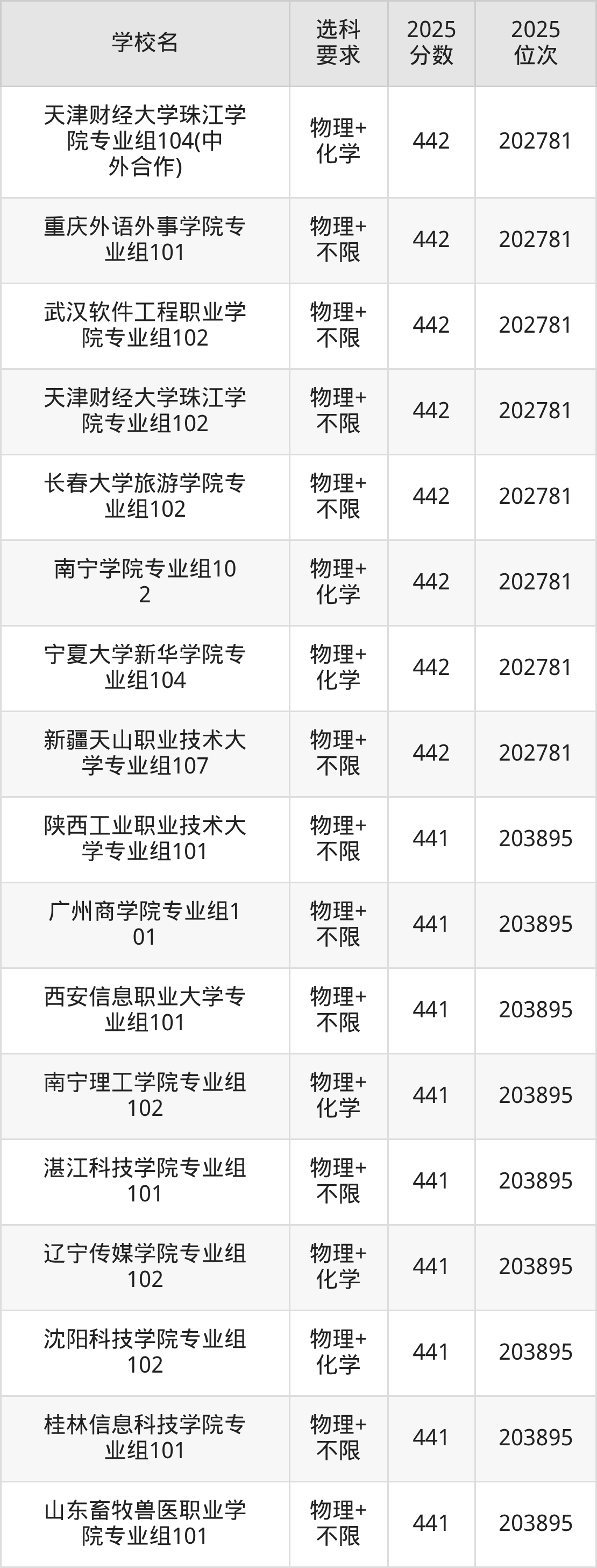 | 学校名 | 专业组 | 选科 要求 | 2025 分数 | 2025 位次 |