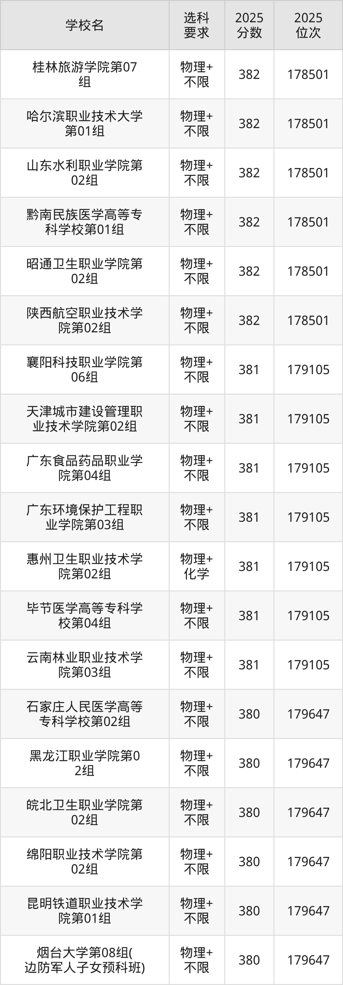 | 湖南科技职业学院 | 100组 | 物理+ 不限 | 381 | 163558 |