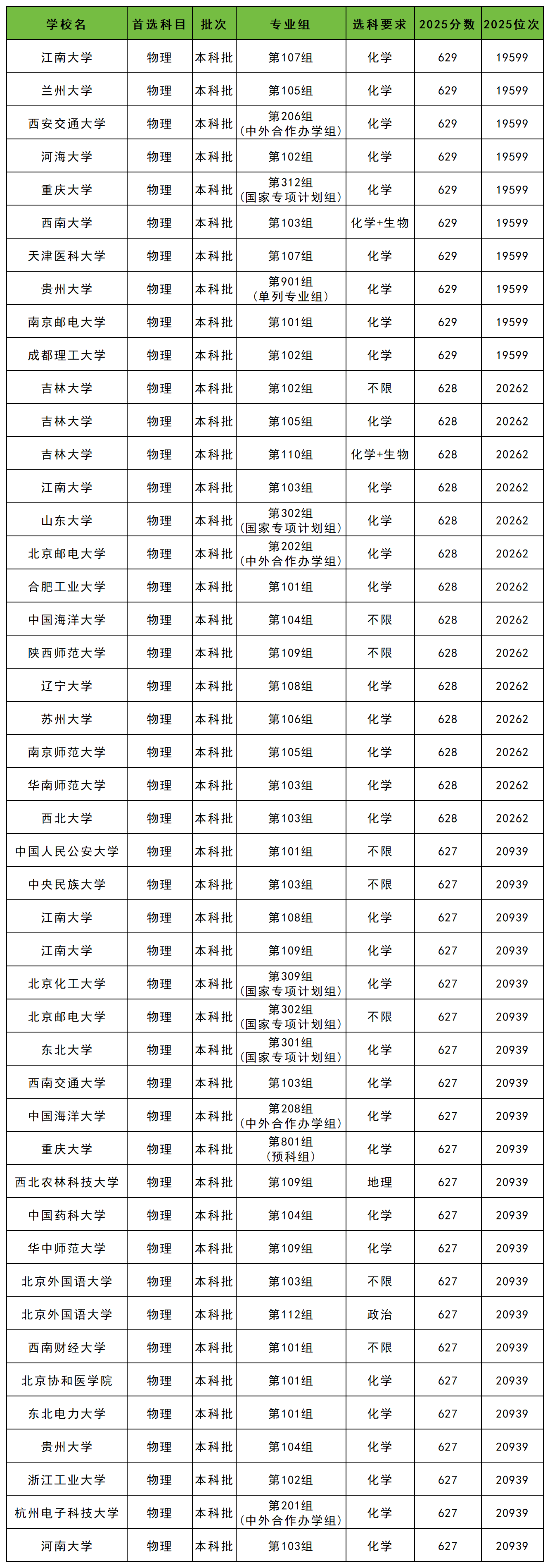 | 学校名 | 专业组 | 2025 分数 |