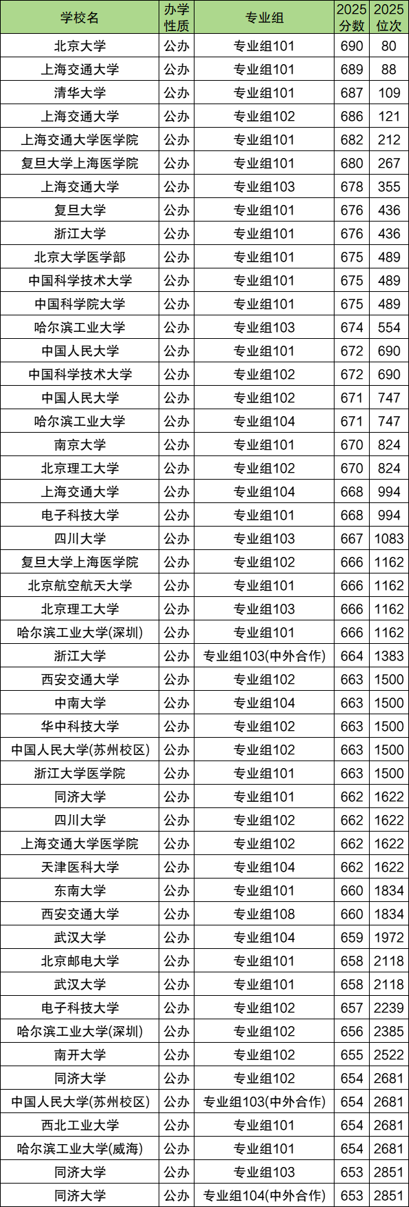 | 上海交通大学 | 专业组101 | 658 | 76 |