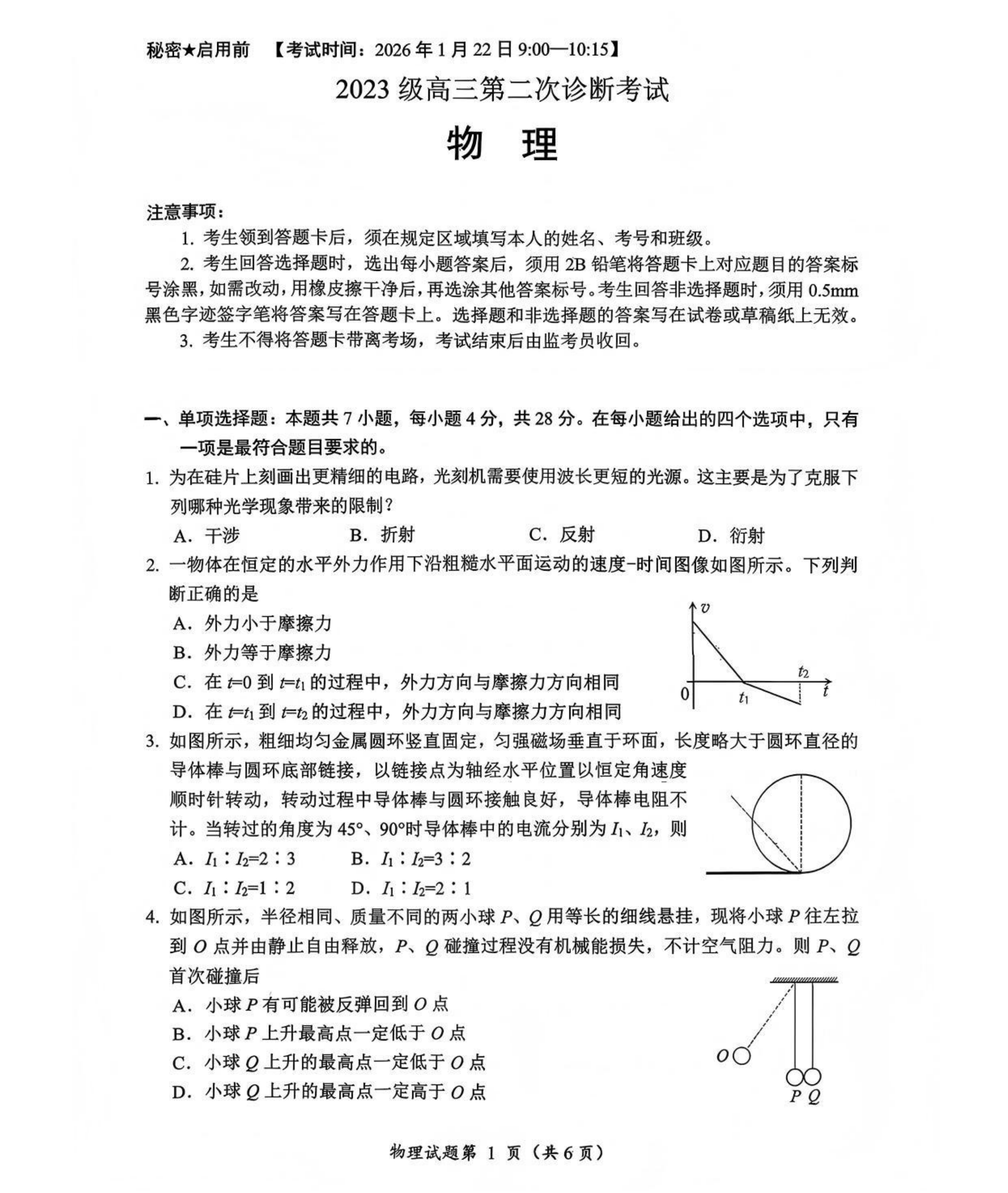 2026届绵阳高三第二次诊断性测试物理科目1月22日9:00-10:15考试,为帮助各位同学估分,本文汇总了绵阳二诊物理试卷和答案,包括2026绵阳二诊物理试题、2026绵阳二诊物理答案解析,想对答案的同学一起来看看吧。