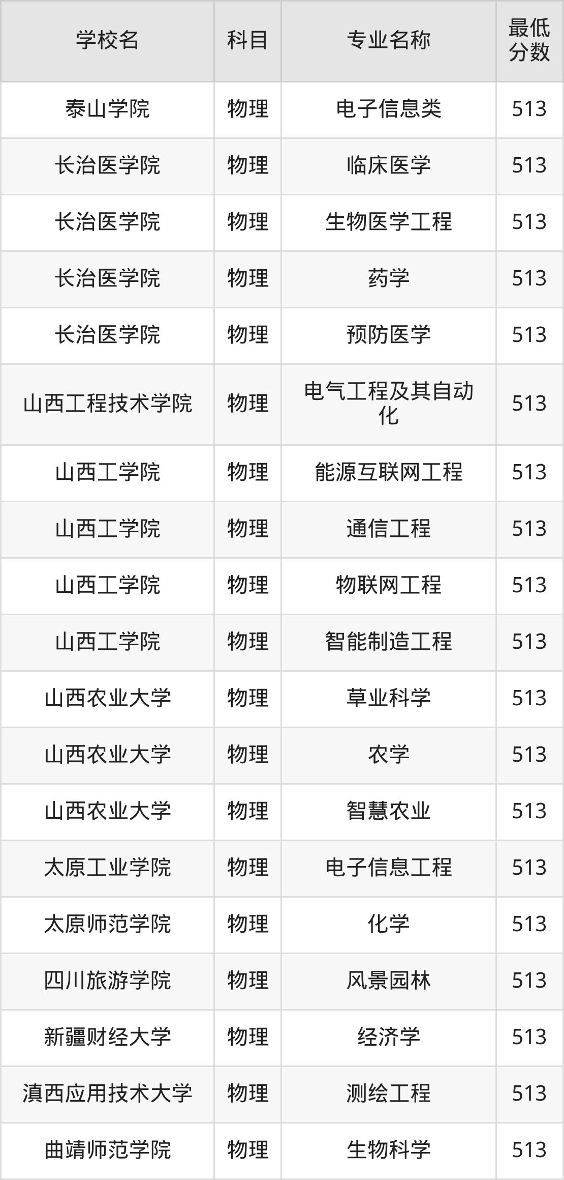 | 太原工业学院 | 电子信息工程 | 物理 | 513 |