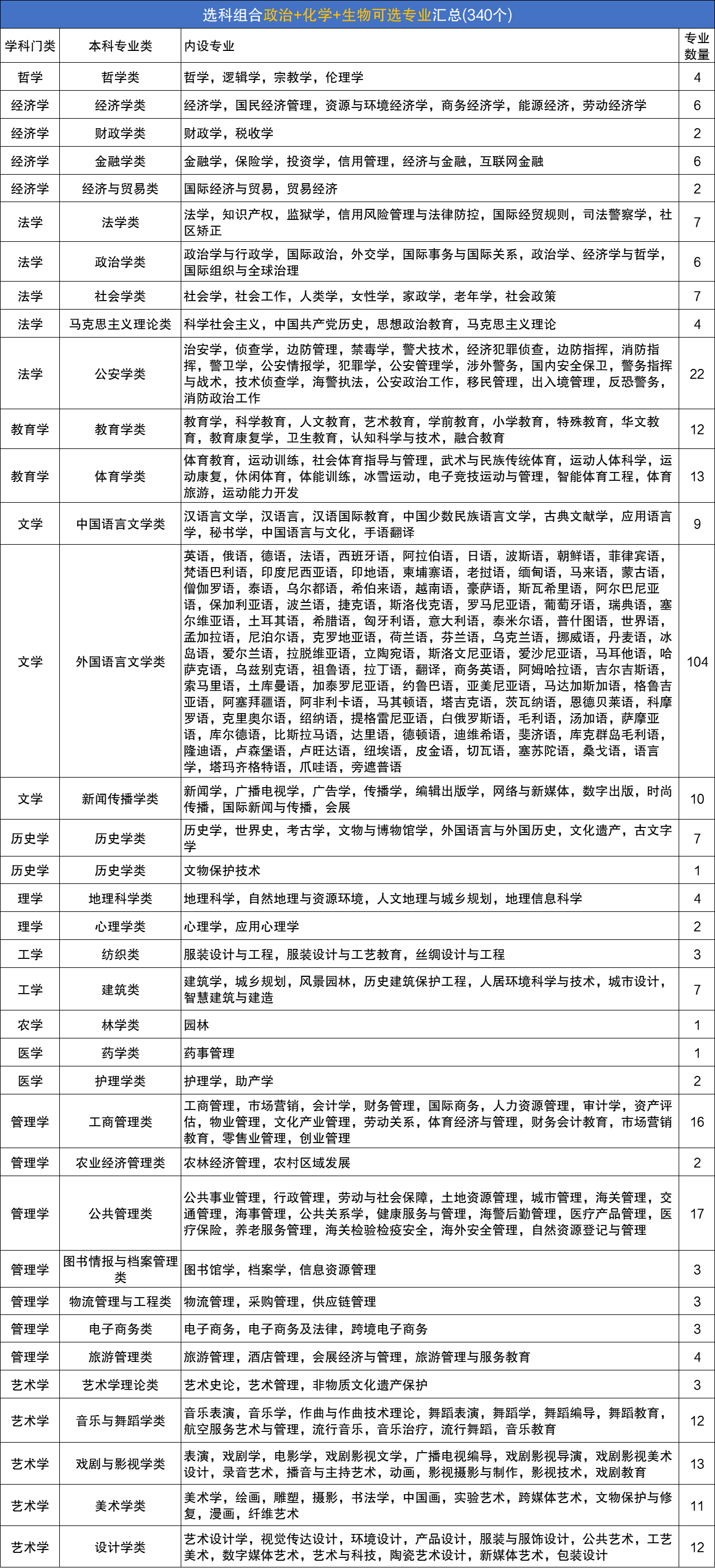 完整专业名单可见下表: