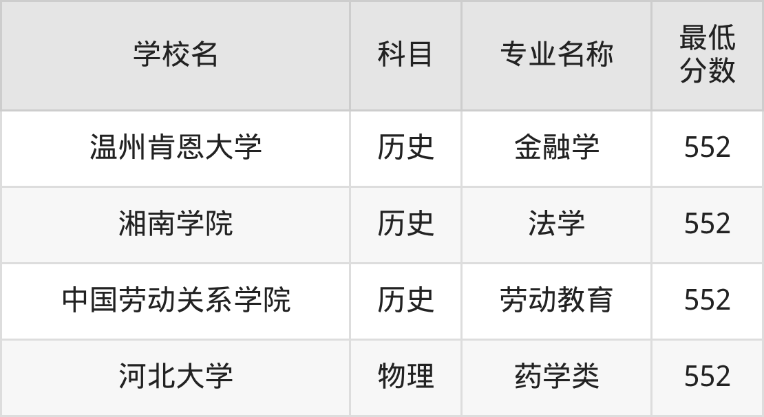| 温州肯恩大学 | 经济学 | 历史 | 552 |