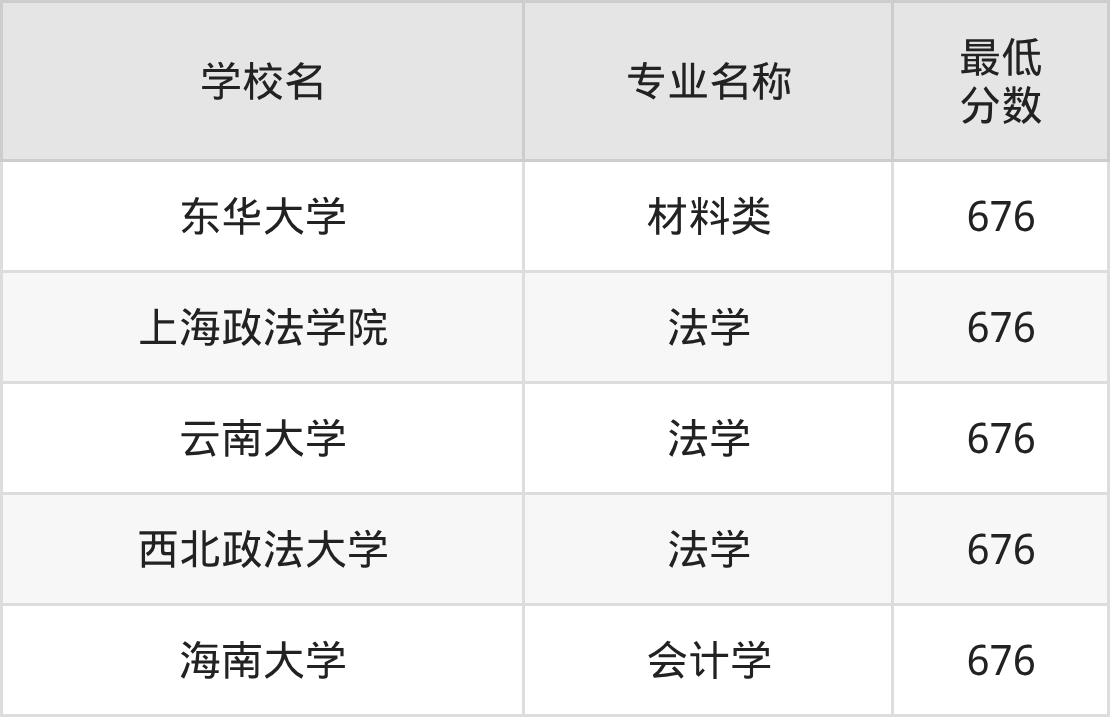 最低分为676分的文科大学有5所、专业有3个。
