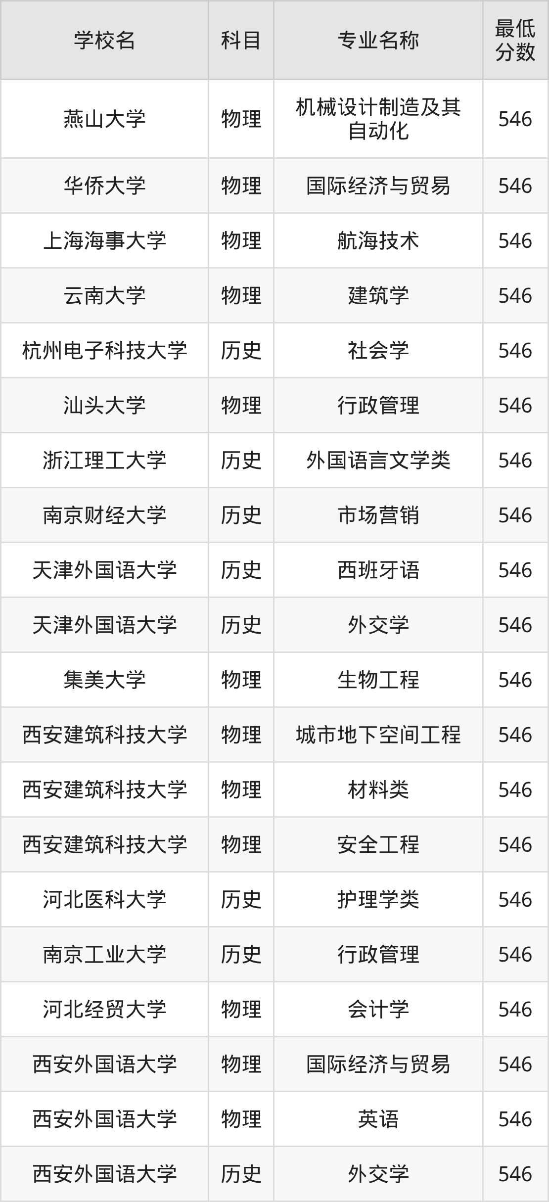 | 西安外国语大学 | 国际经济与贸易 | 物理 | 546 |