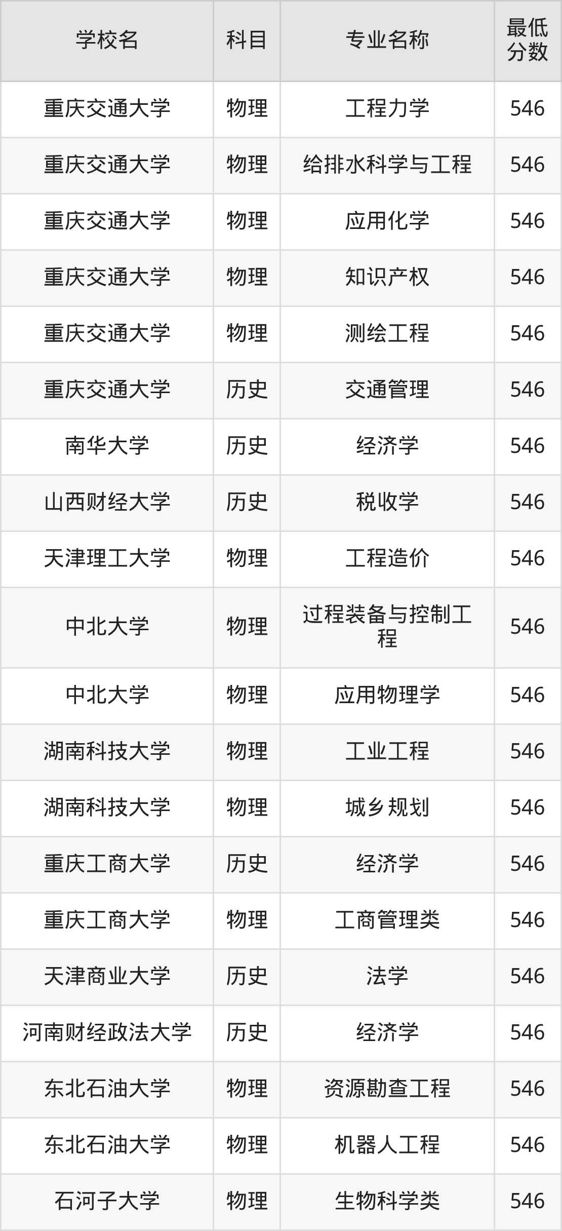 | 南华大学 | 经济学 | 历史 | 546 |