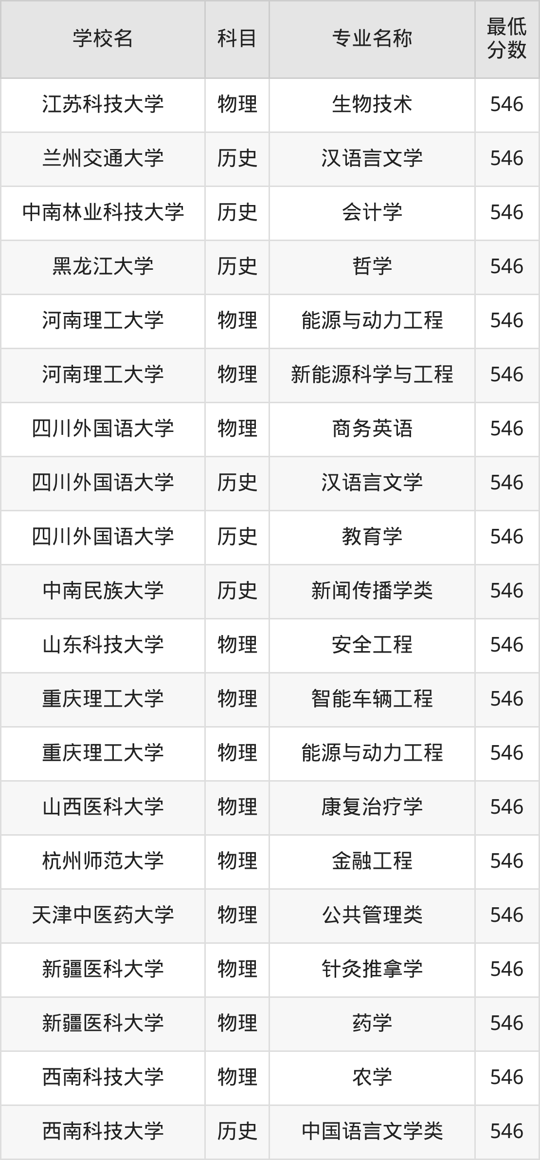 | 重庆师范大学 | 生物技术 | 物理 | 546 |