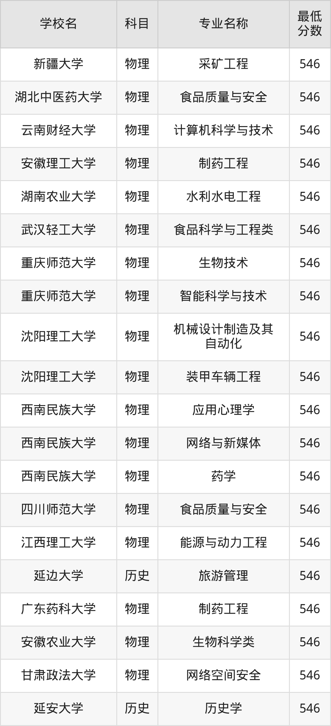 | 新疆医科大学 | 药学 | 物理 | 546 |