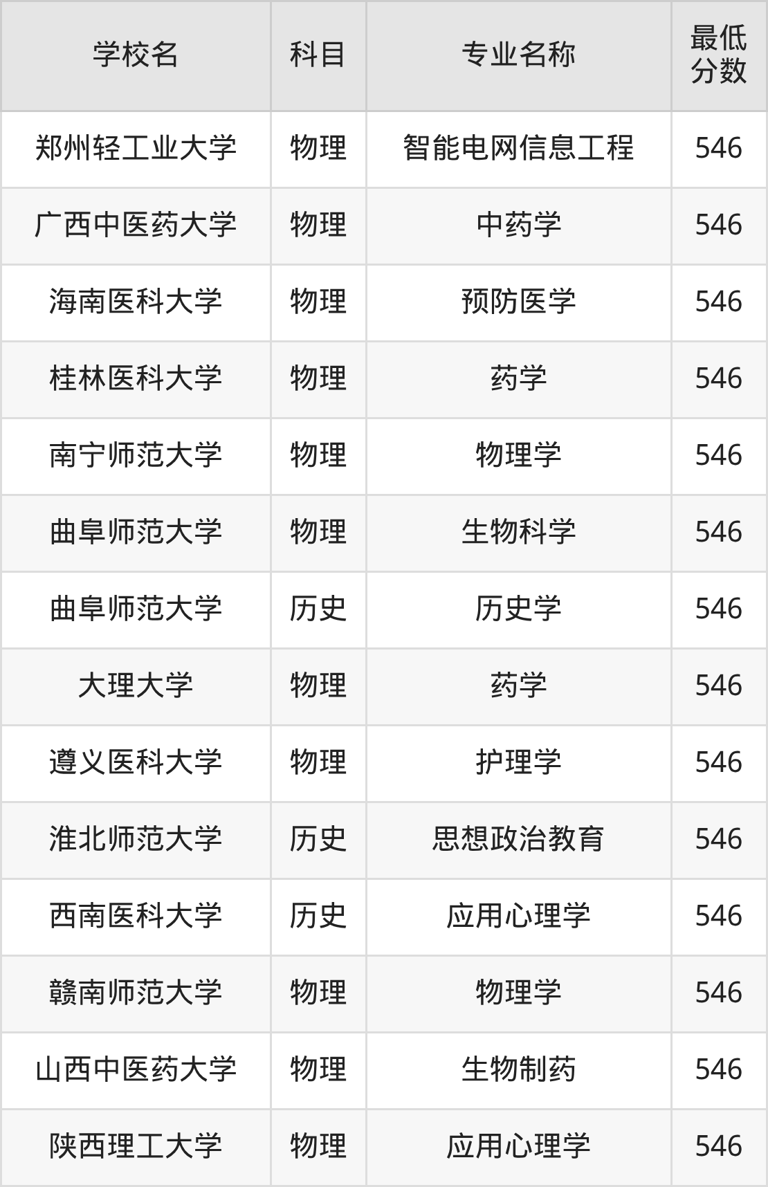 | 陕西理工大学 | 应用心理学 | 物理 | 546 |