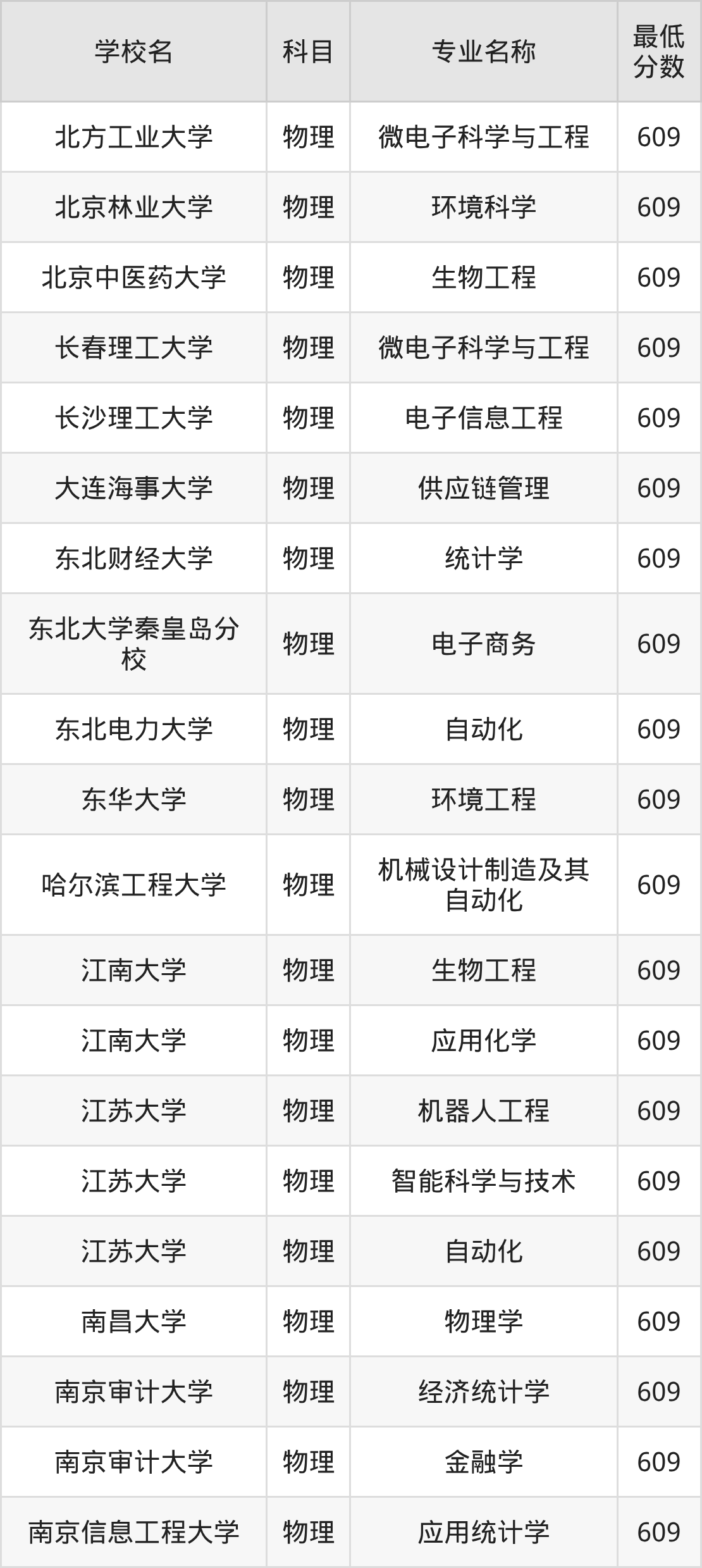 | 东北电力大学 | 自动化 | 物理 | 609 |