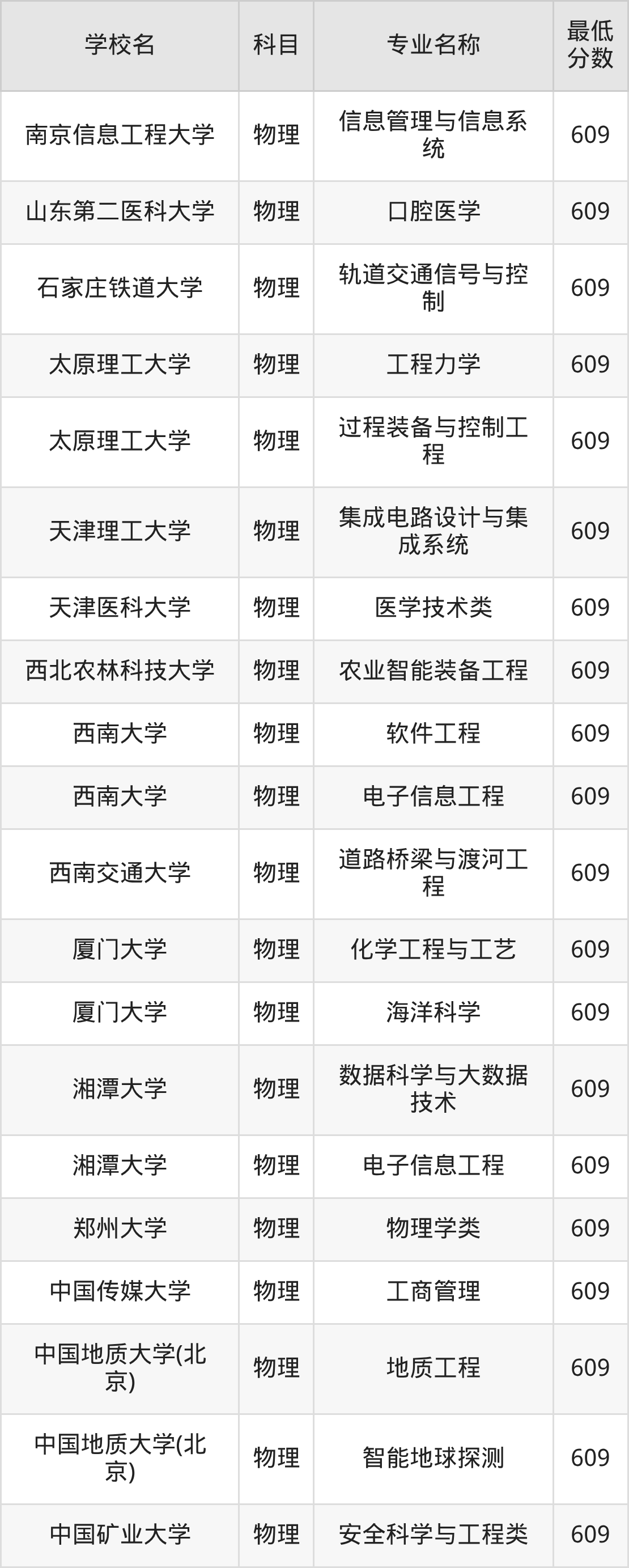 | 南京信息工程大学 | 信息管理与信息系 统 | 物理 | 609 |