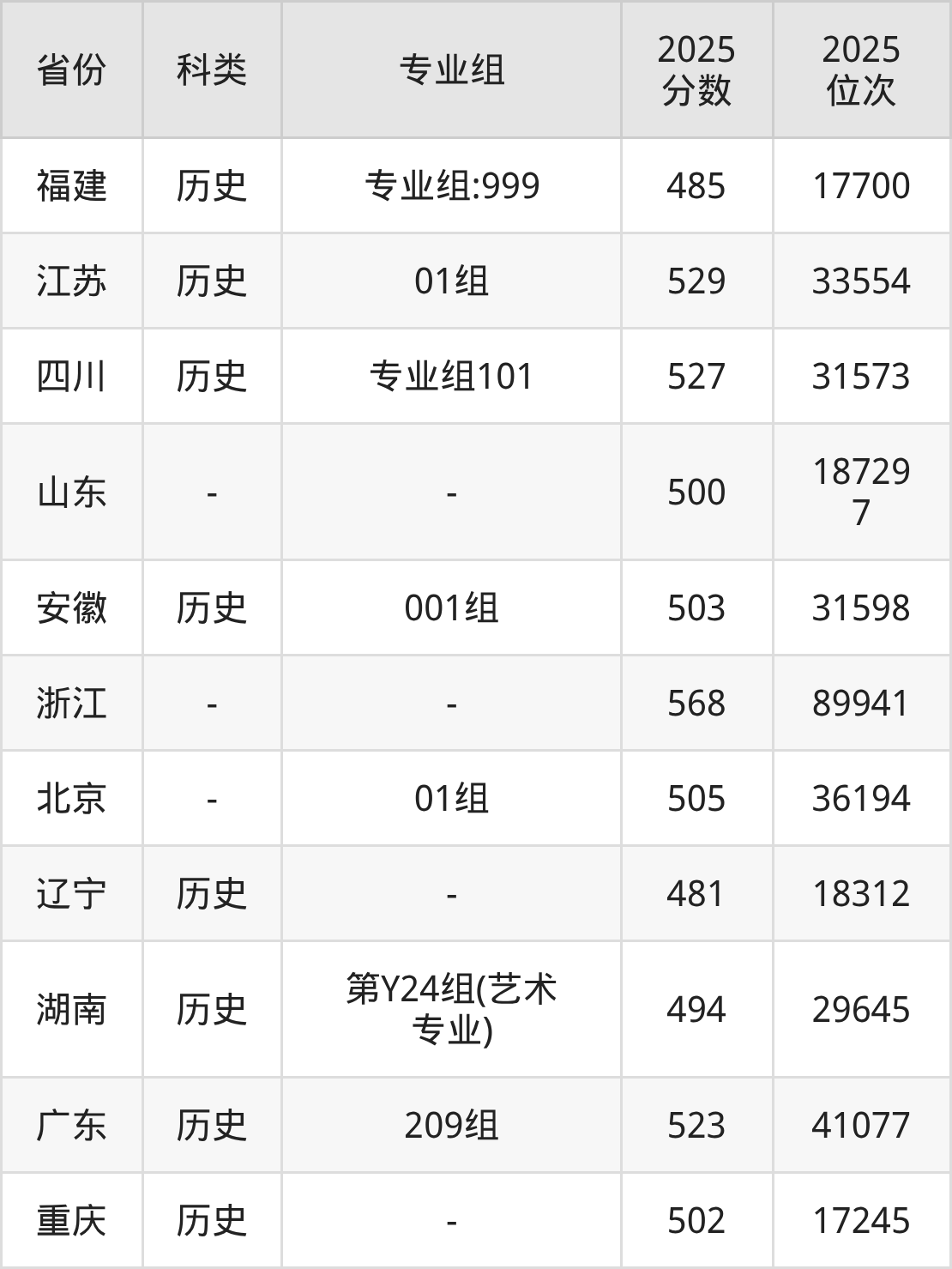 除上述省份外,山东艺术学院2025各省录取最低分详情见下: