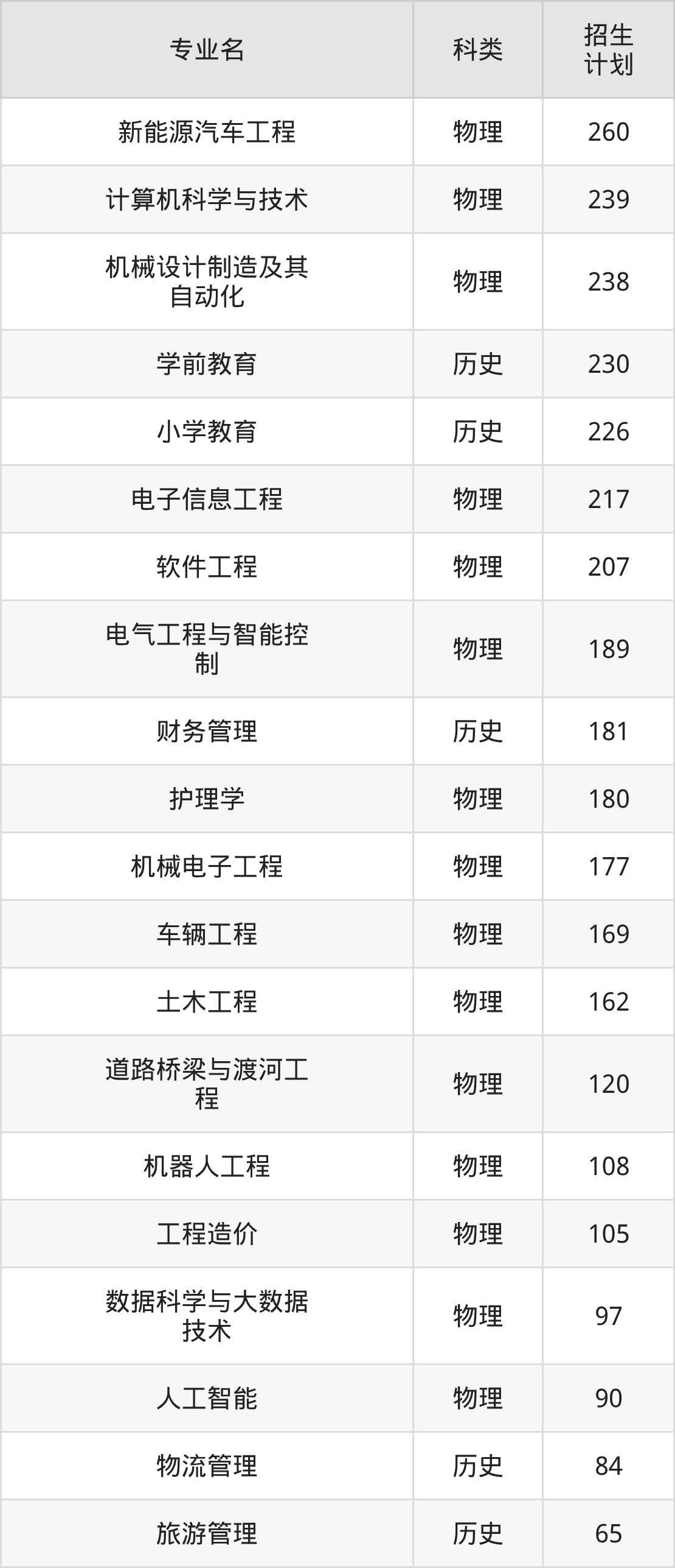 第二名:重庆(135人),招生人数最多的专业是新能源汽车工程(12人、物理类)。