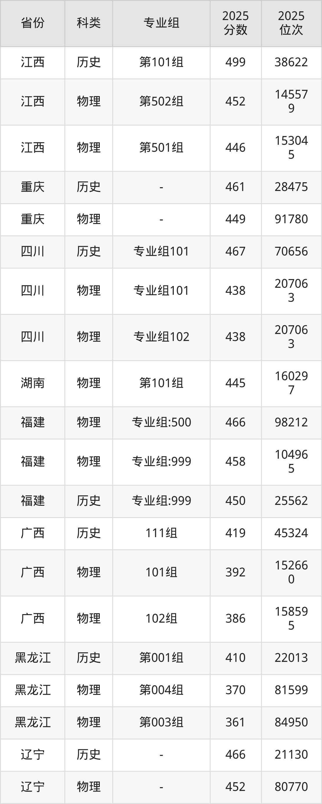 除上述省份外,四川工业科技学院2025各省录取最低分详情见下: