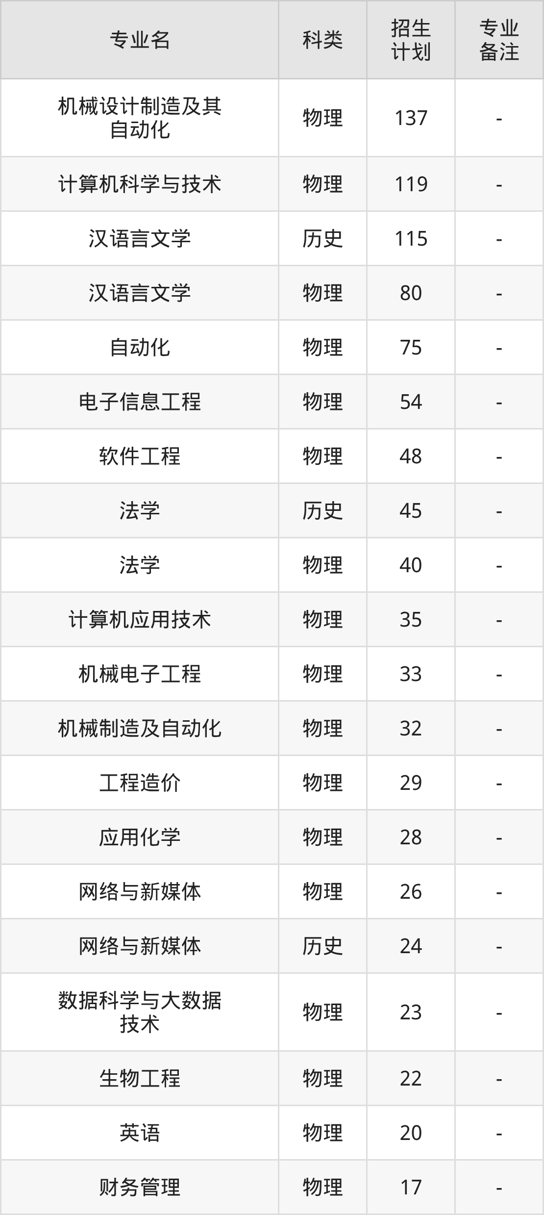 第三名:河南(90人),招生人数最多的专业是机械制造及自动化(8人、物理类)。