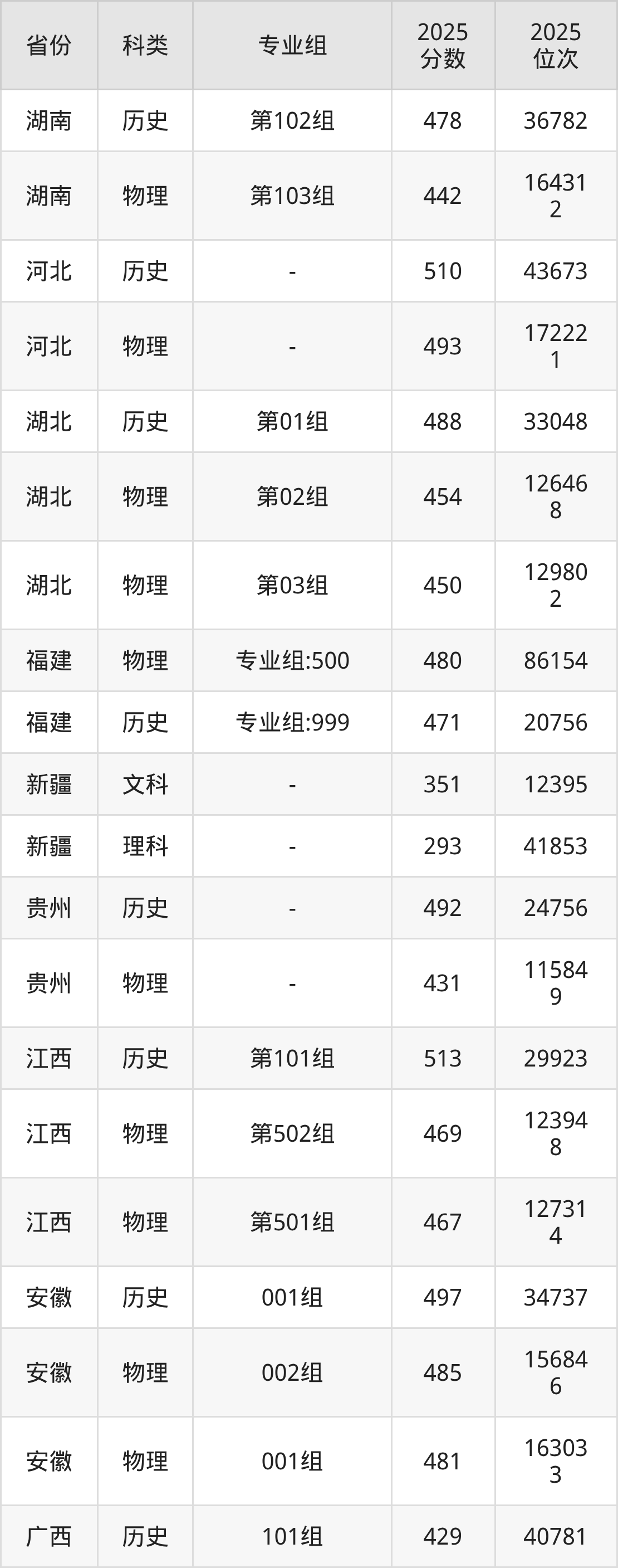 除上述省份外,湖北工程学院新技术学院2025各省录取最低分详情见下: