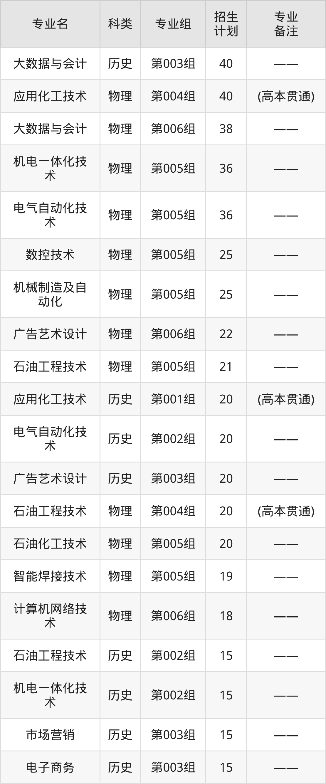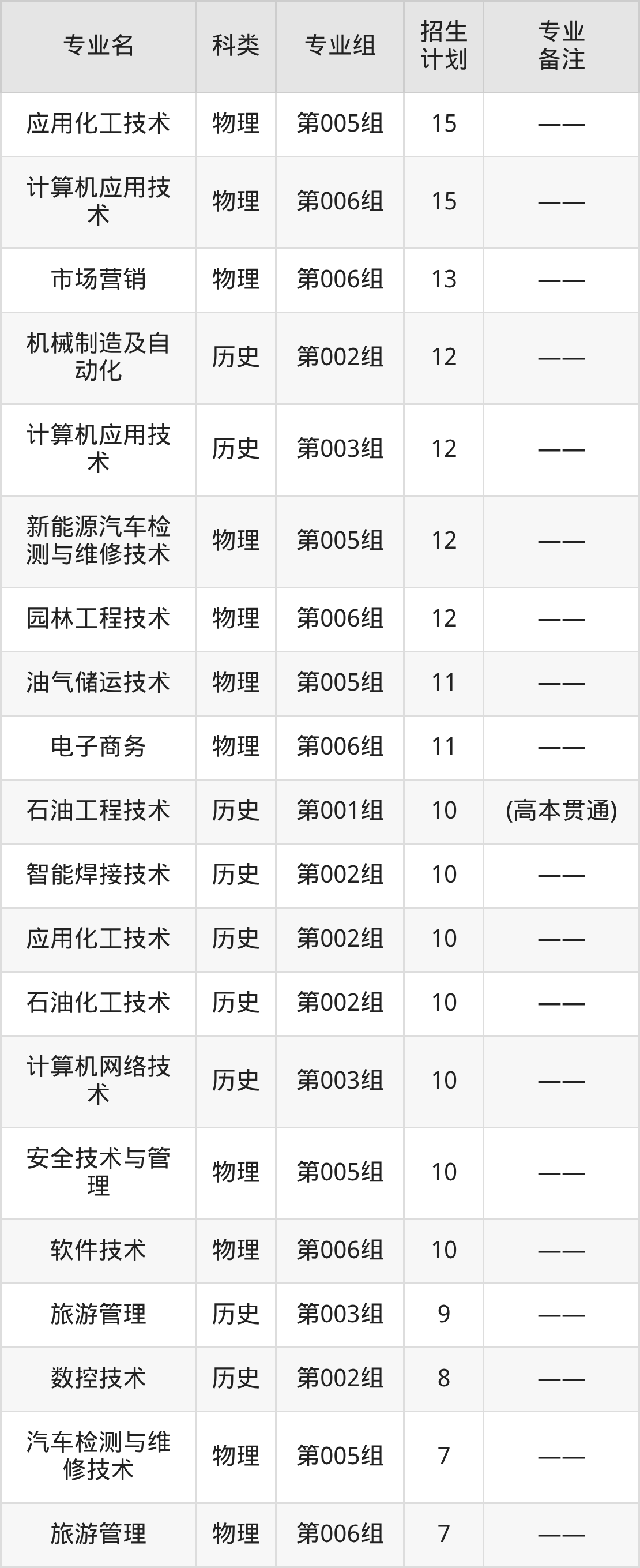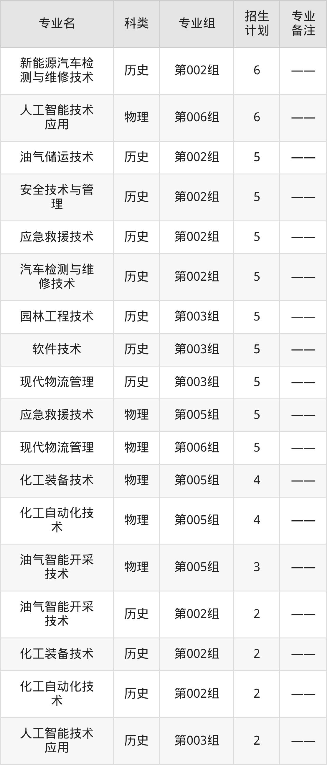 值得注意的是,大庆职业学院在专科批、专科提前批A招生,招生类型为历史类、物理类。篇幅有限,这里仅附上大庆职业学院在黑龙江省内招生计划详情:
