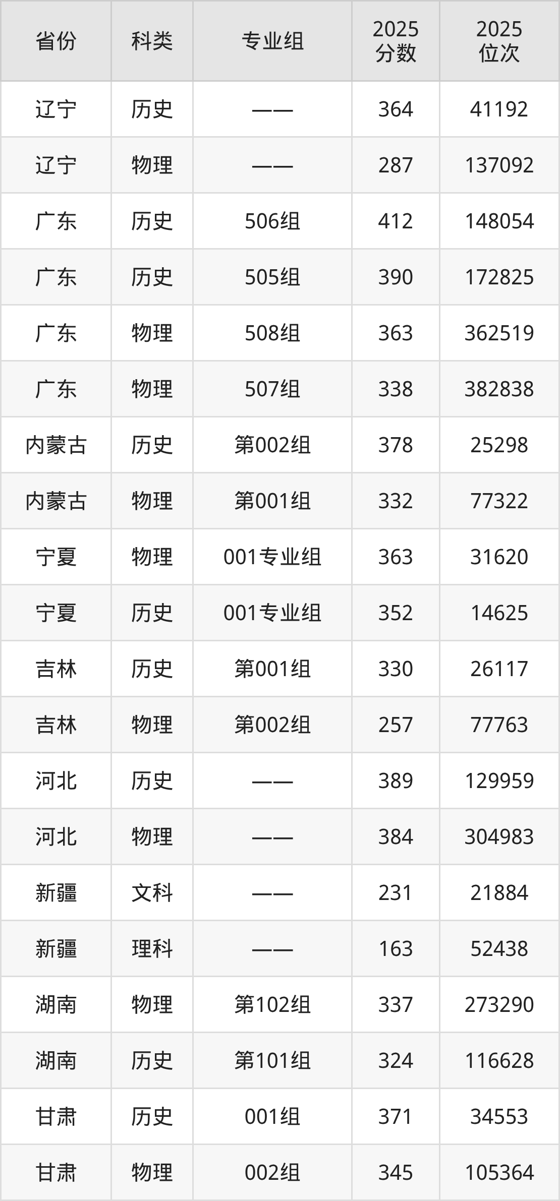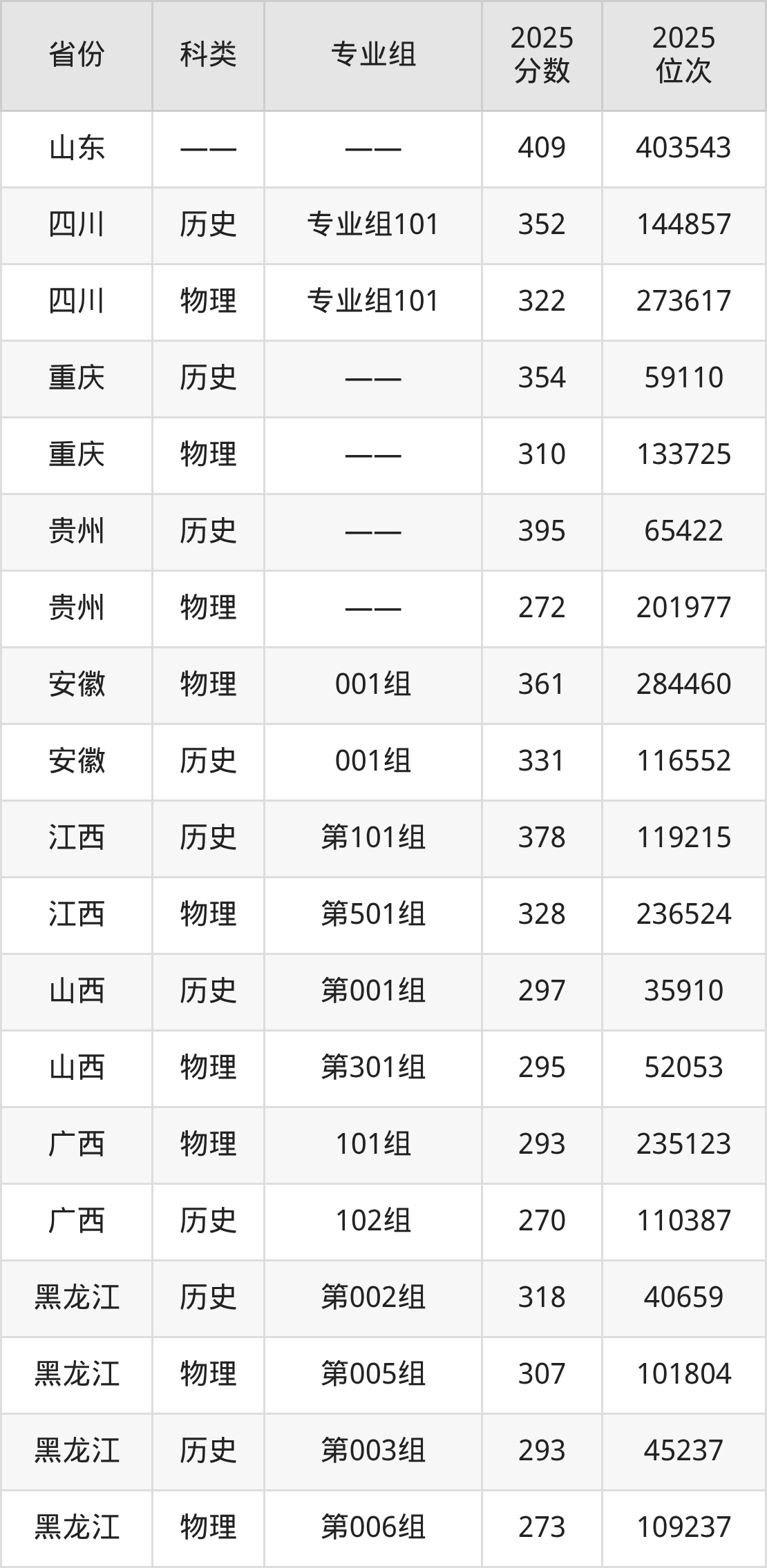 除上述省份外,大庆职业学院2025各省录取最低分详情见下: