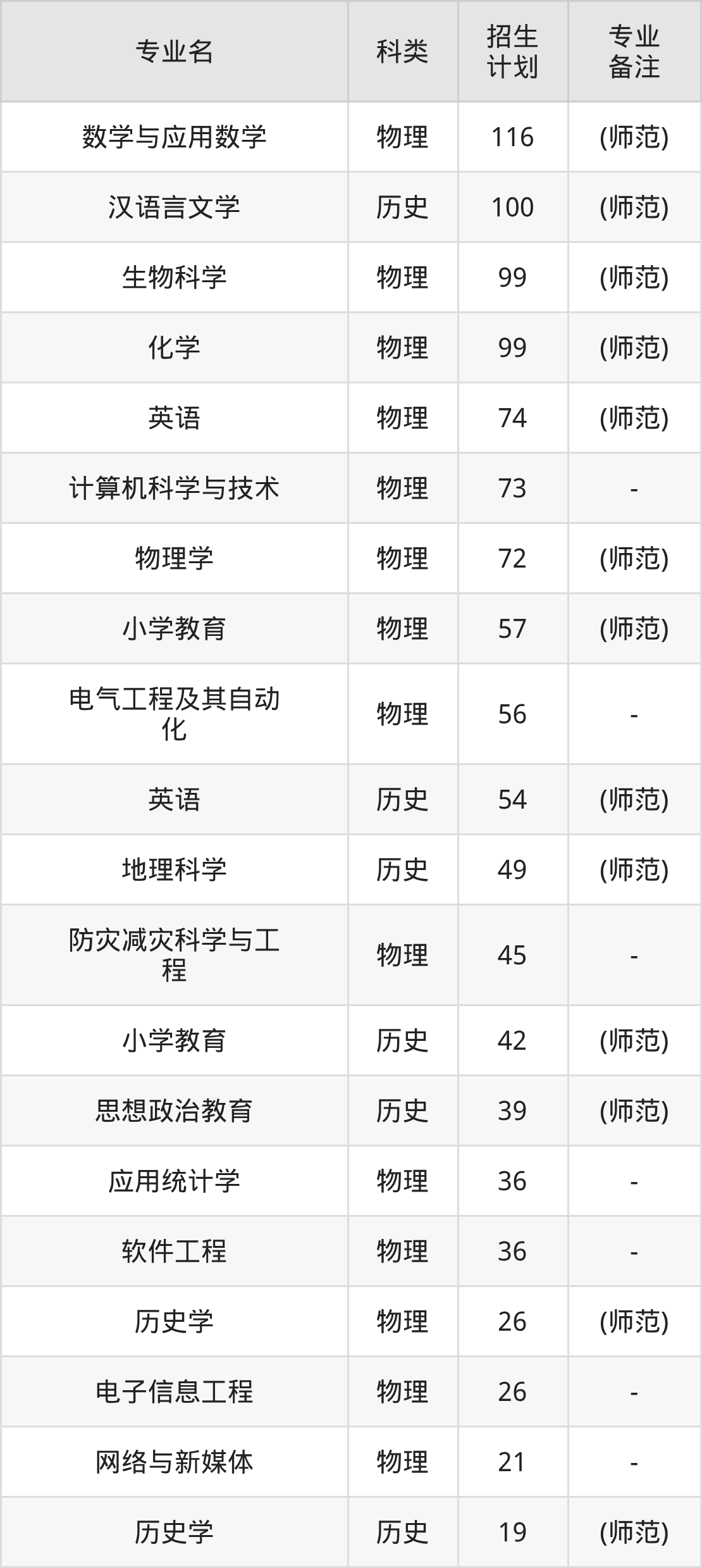 第一名:四川(1194人),招生人数最多的专业是数学与应用数学(116人、物理类,(师范))。