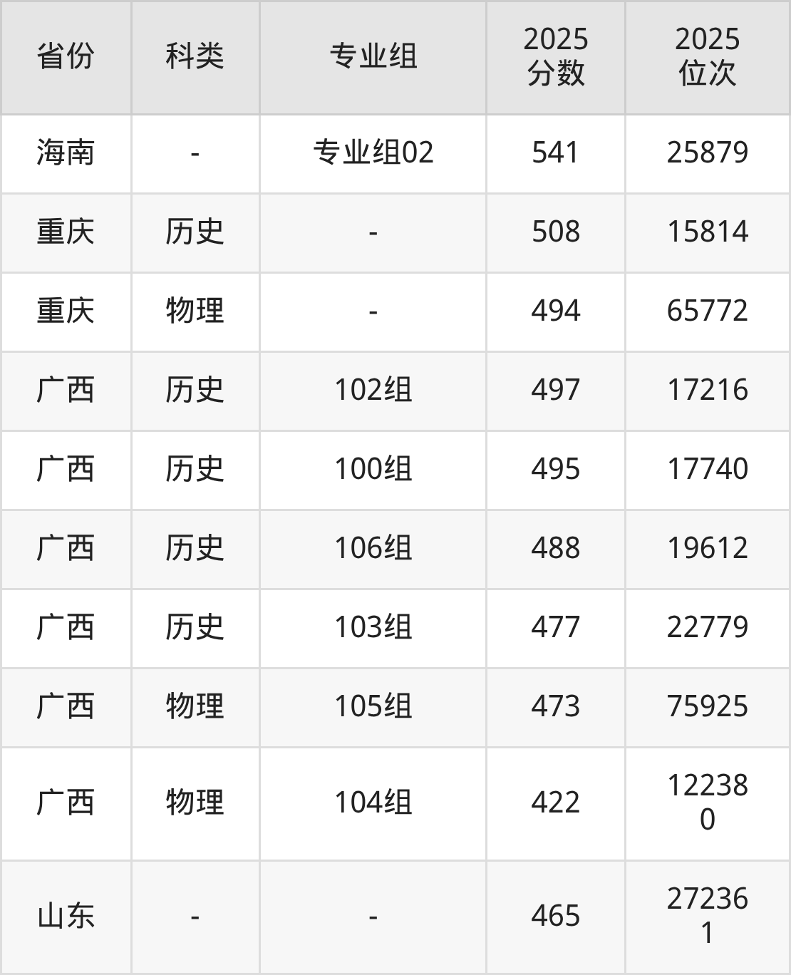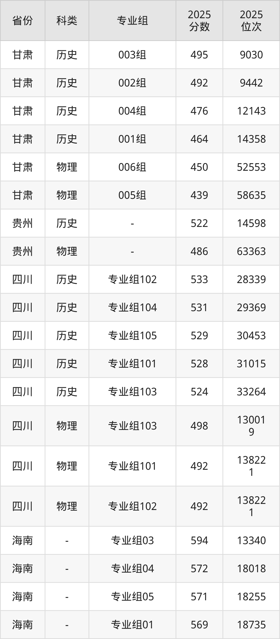 5、四川:最低分492分,对应最低分专业组为物理类专业组102,位次138221名;