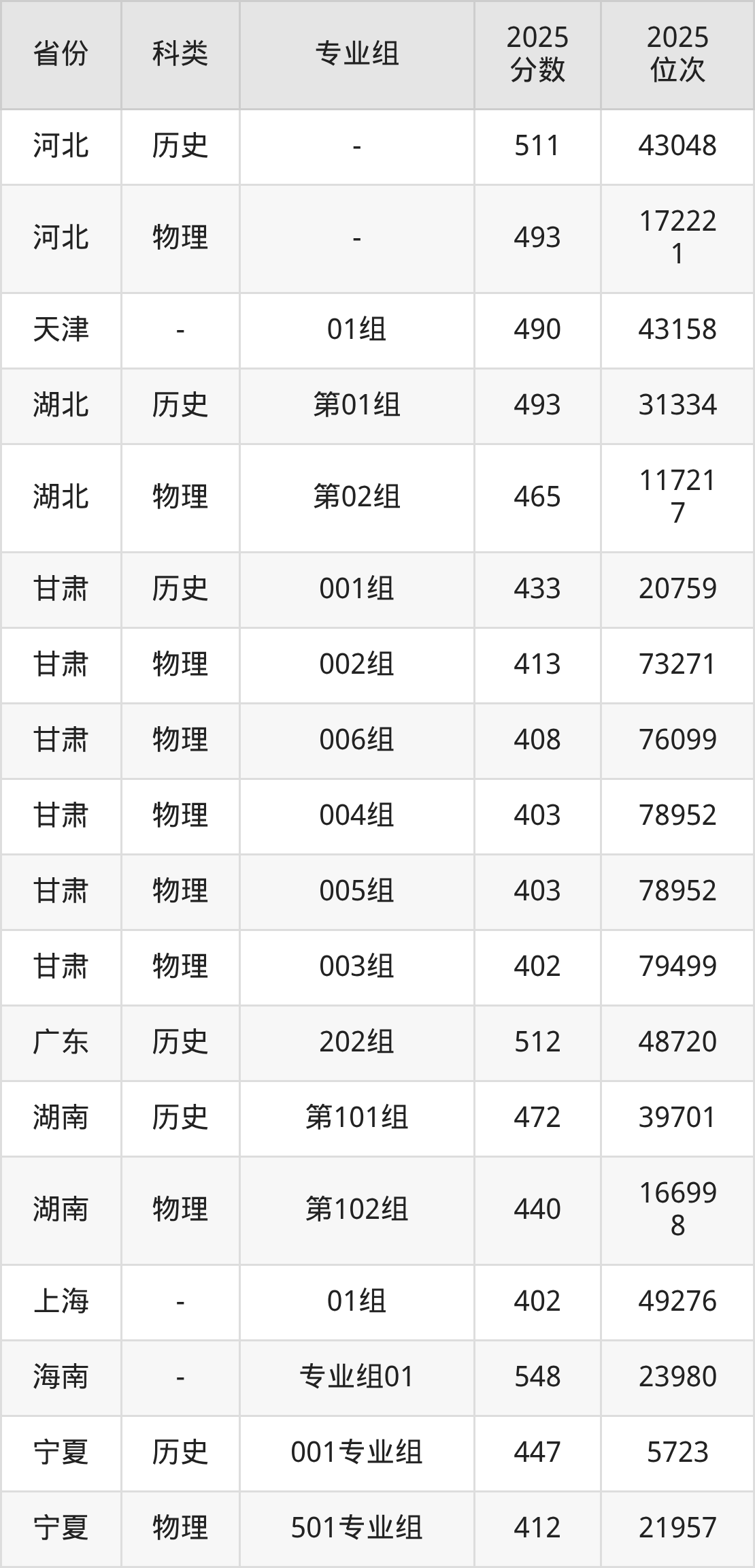 3、甘肃:最低分402分,对应最低分专业组为物理类003组,位次79499名;