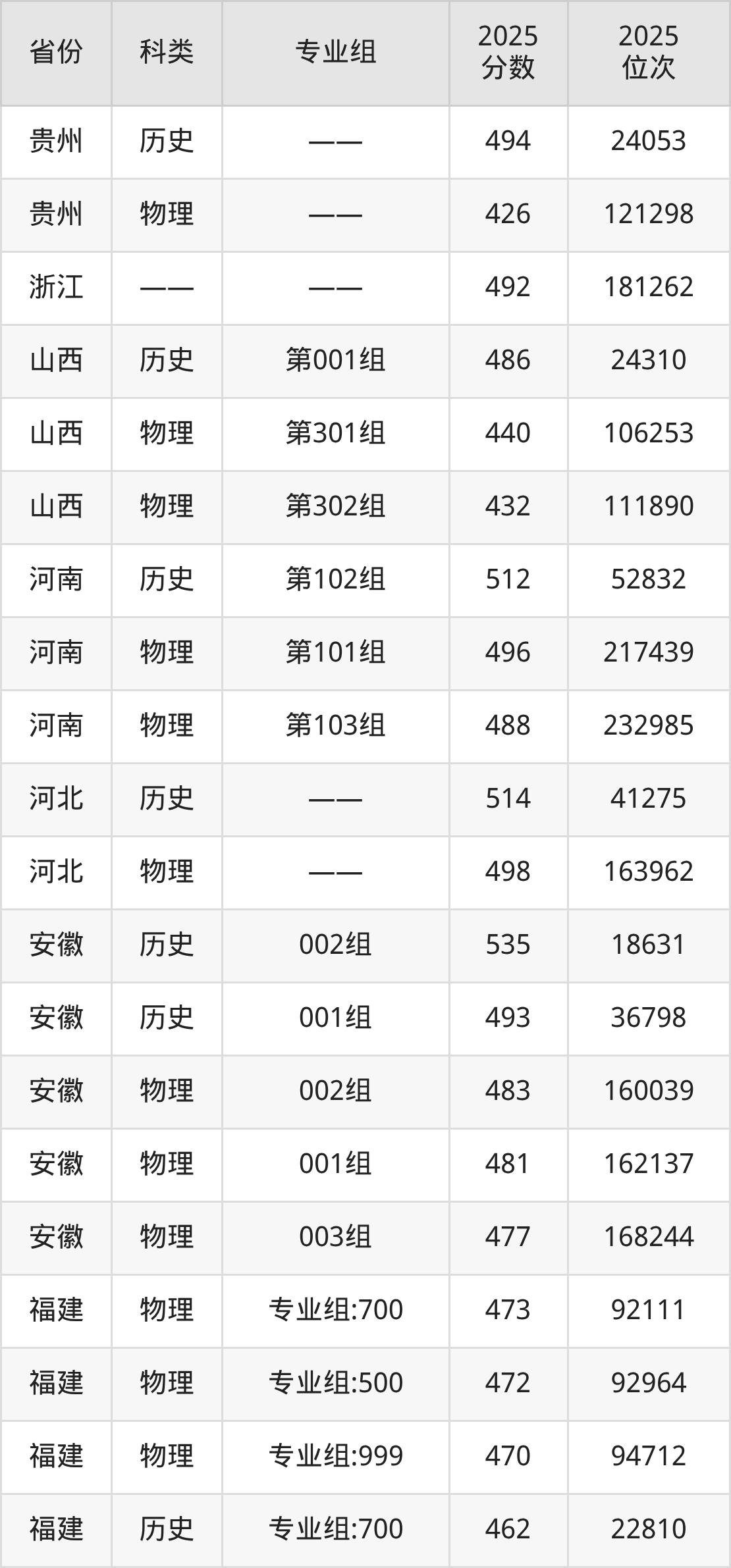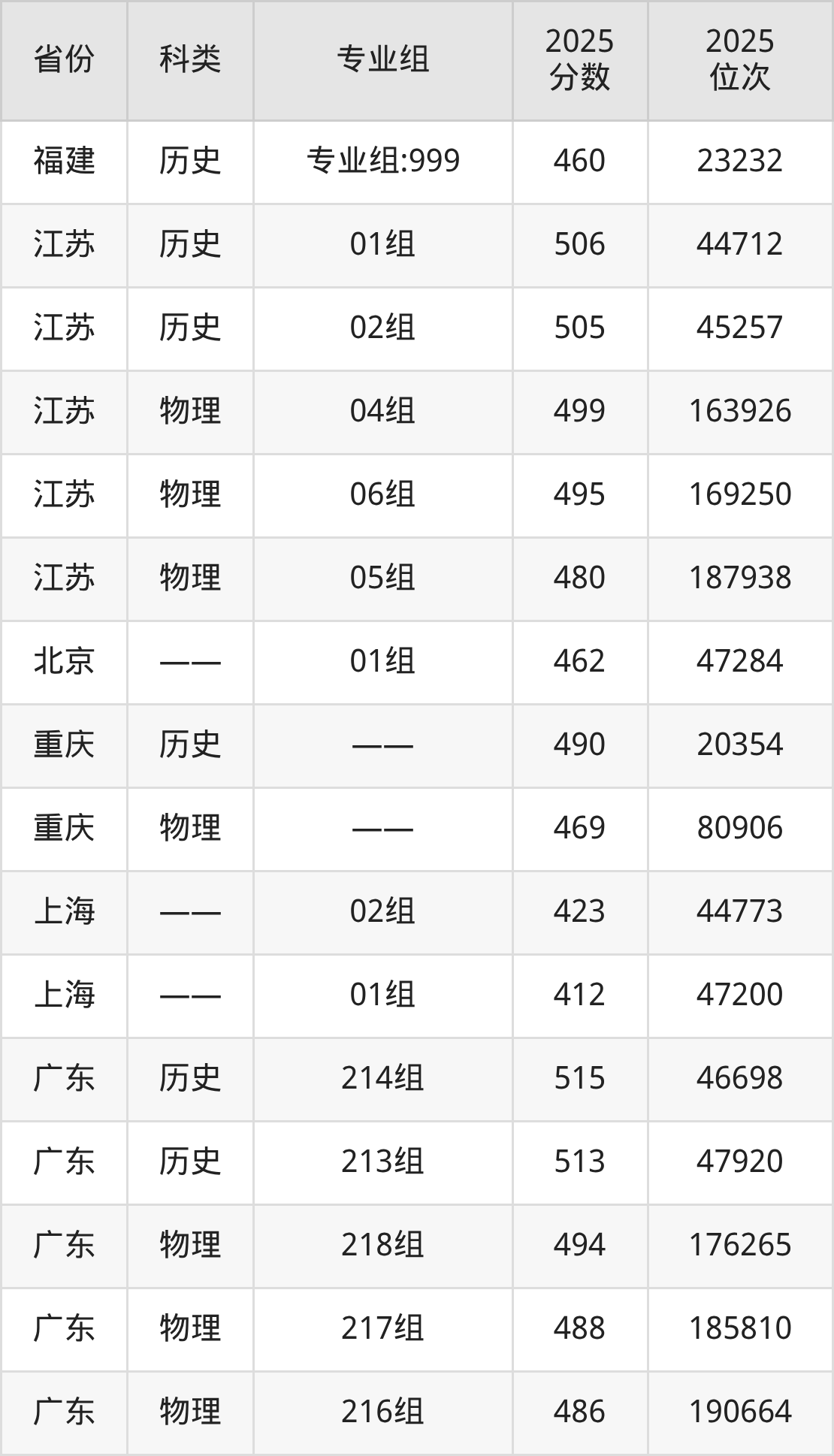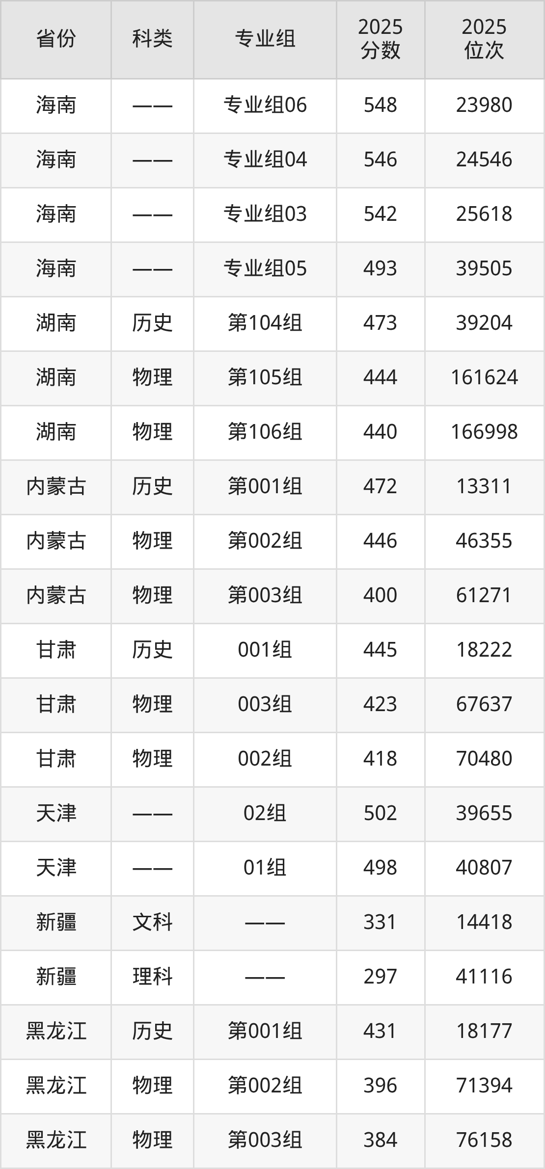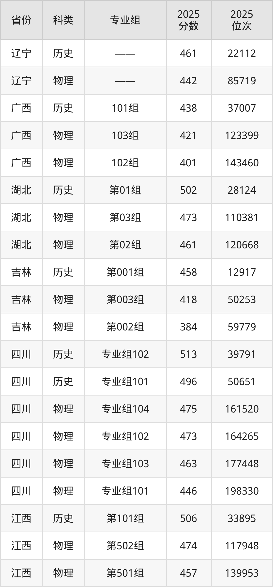 除上述省份外,四川大学锦江学院2025各省录取最低分详情见下:
