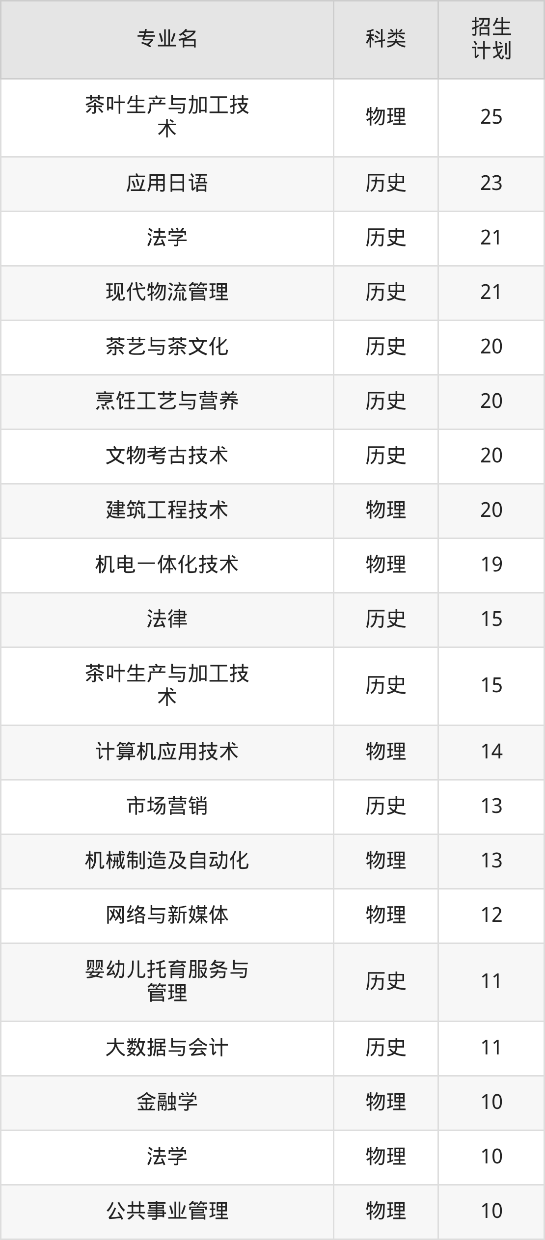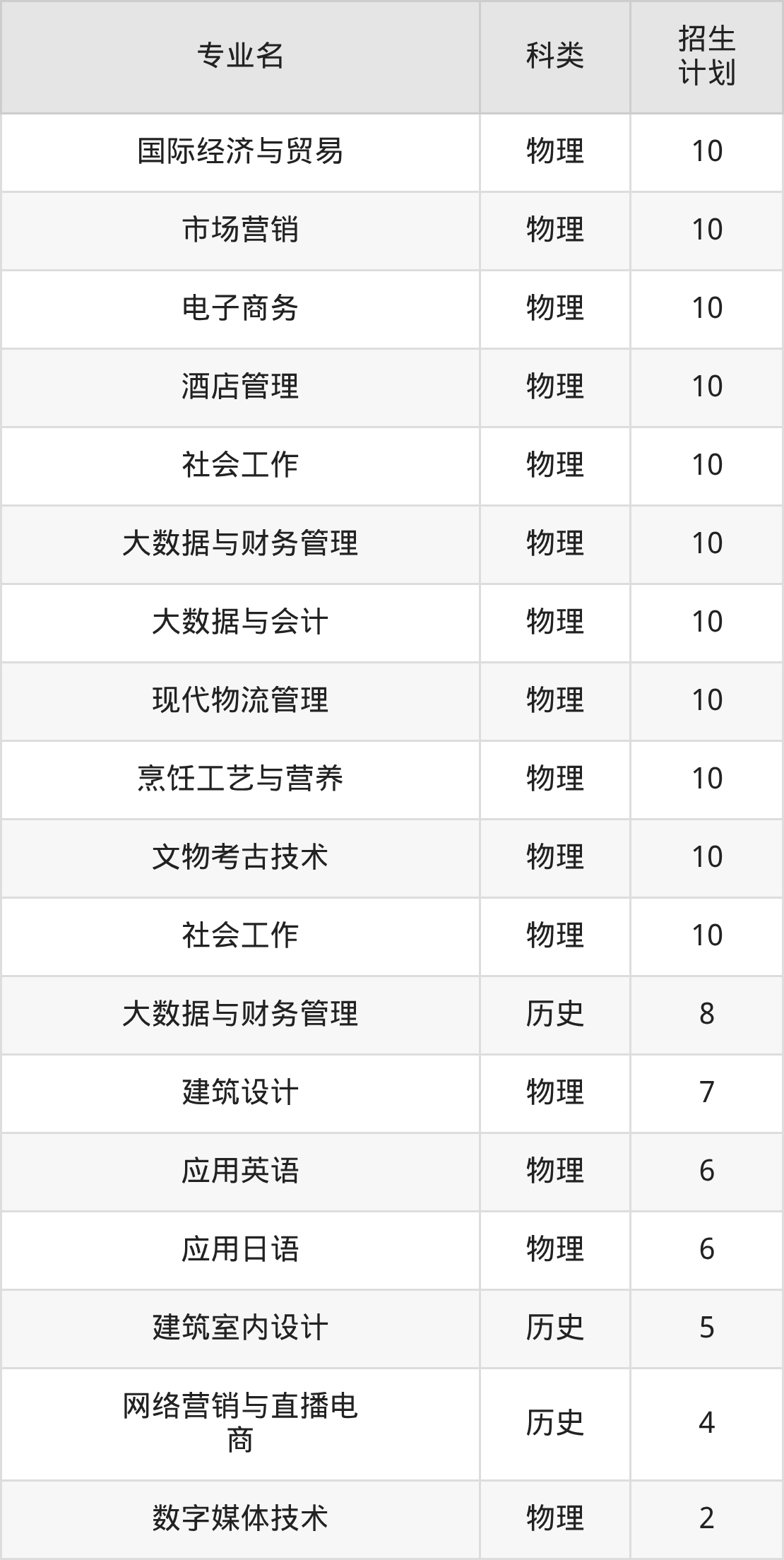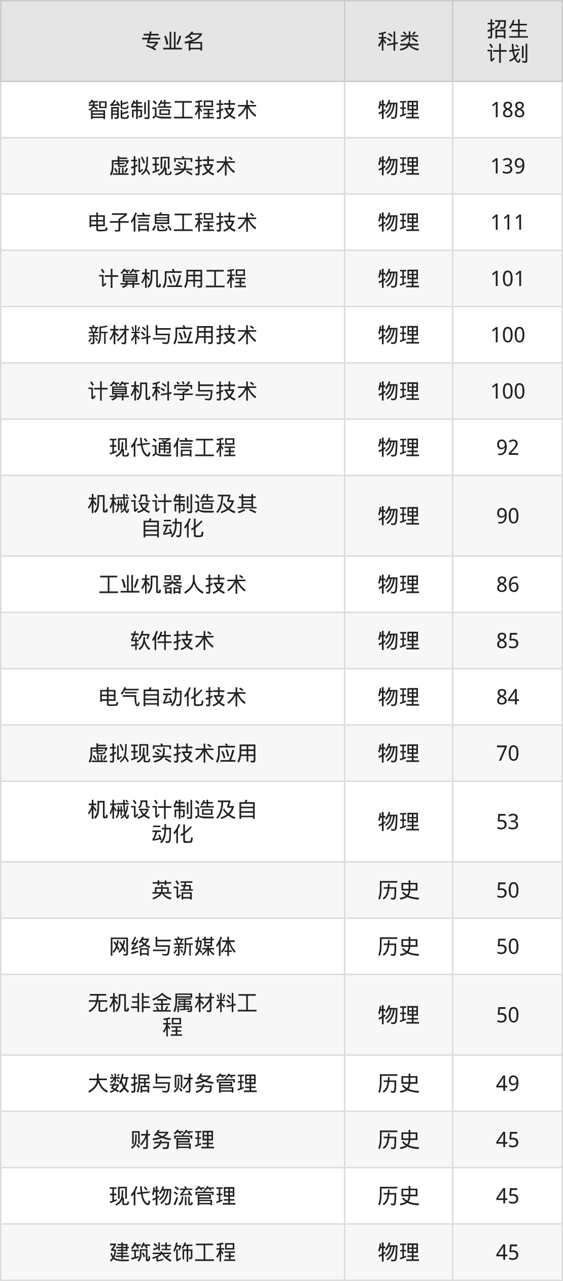 第三名:河北(70人),招生人数最多的专业是建筑工程技术(10人、物理类)。
