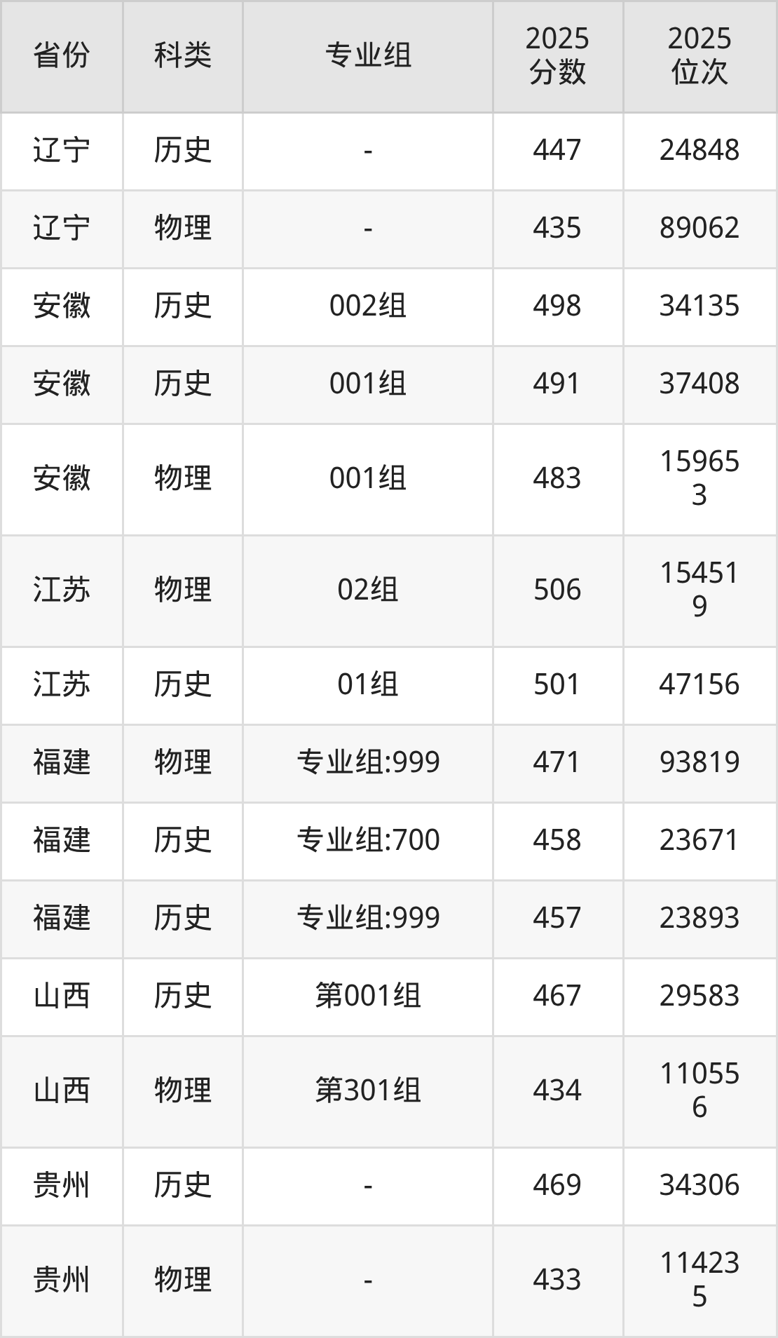 4、山西:最低分434分,对应最低分专业组为物理类第301组,位次110556名;