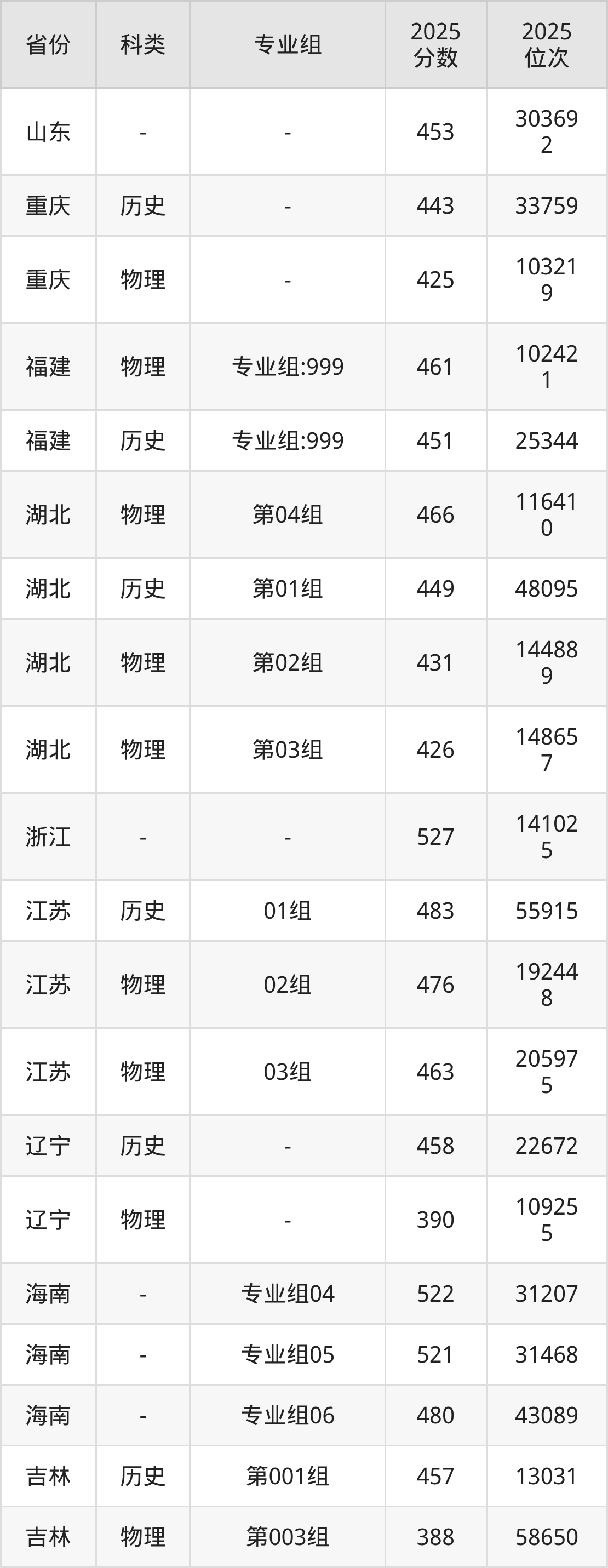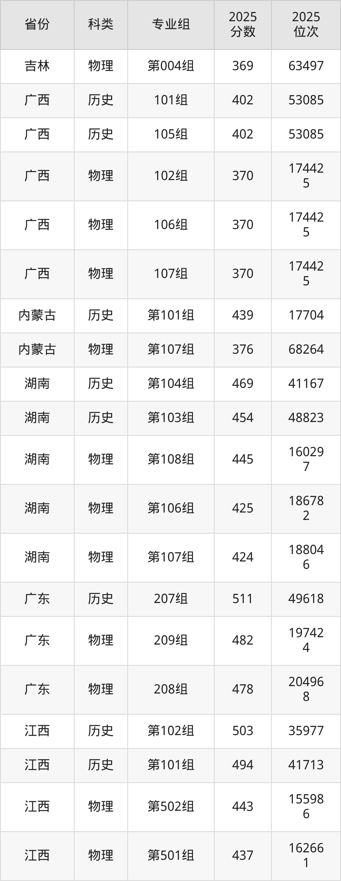 除上述省份外,南宁理工学院2025各省录取最低分详情见下:
