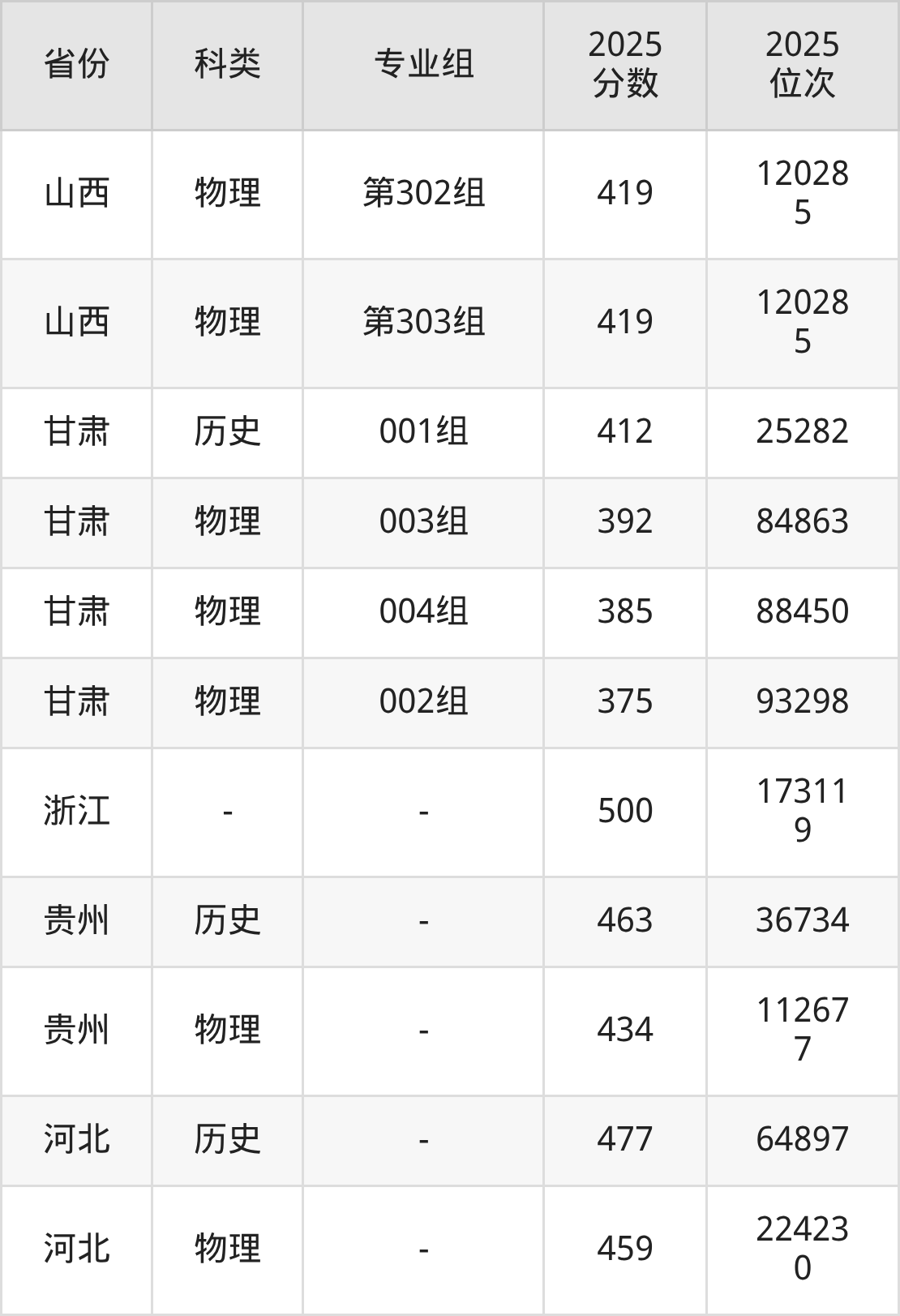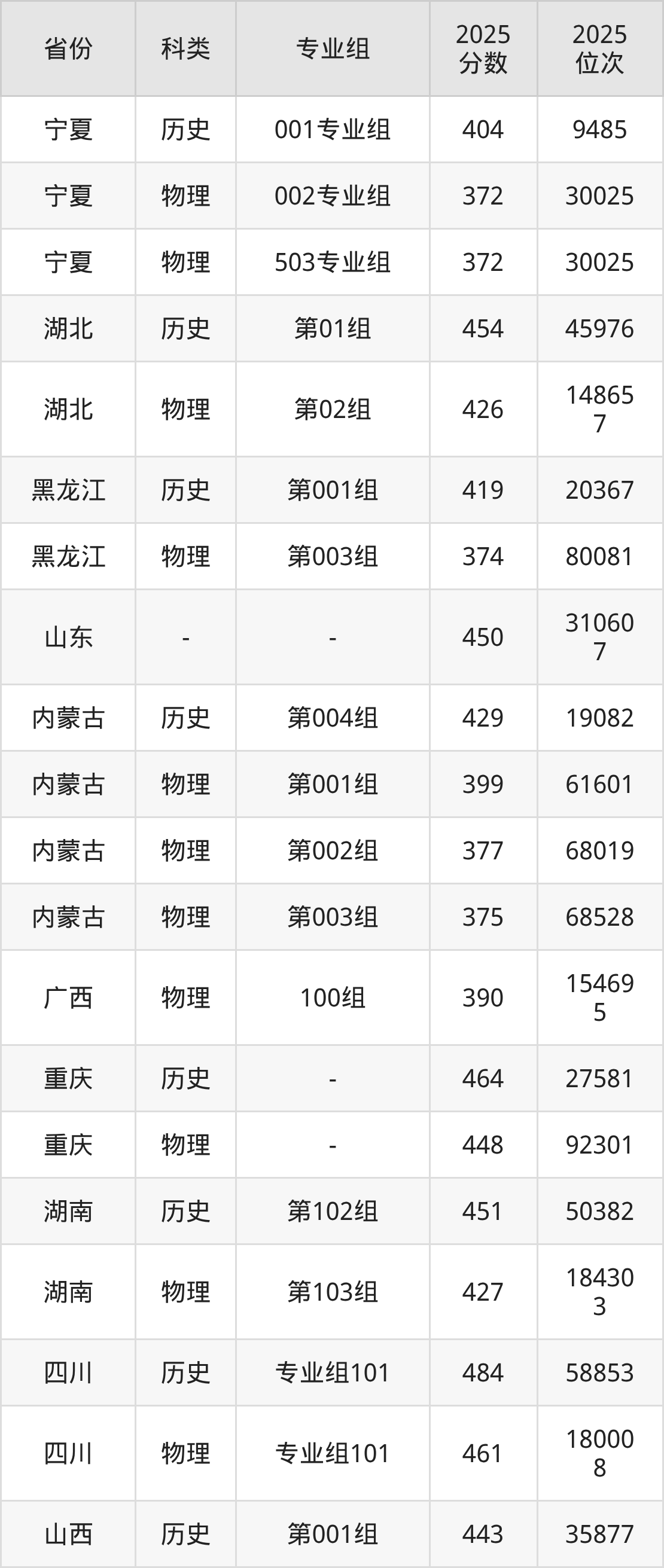 除上述省份外,银川科技学院2025各省录取最低分详情见下: