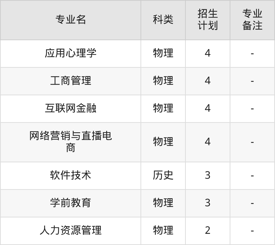 值得注意的是,银川科技学院在本科批、专科批招生,招生类型为历史类、物理类。篇幅有限,这里仅附上银川科技学院在宁夏回族自治区内招生计划详情: